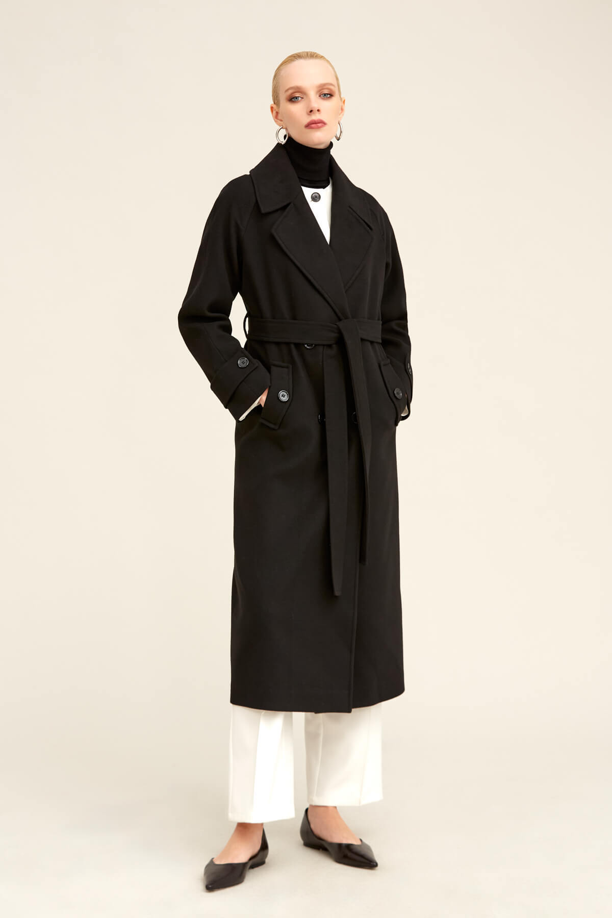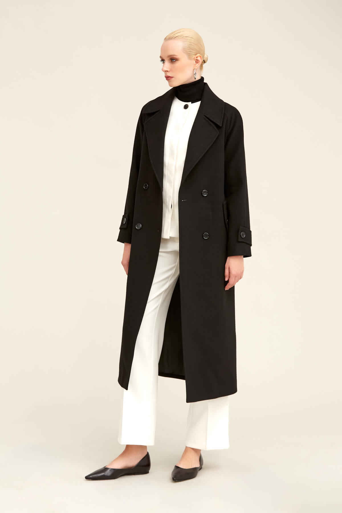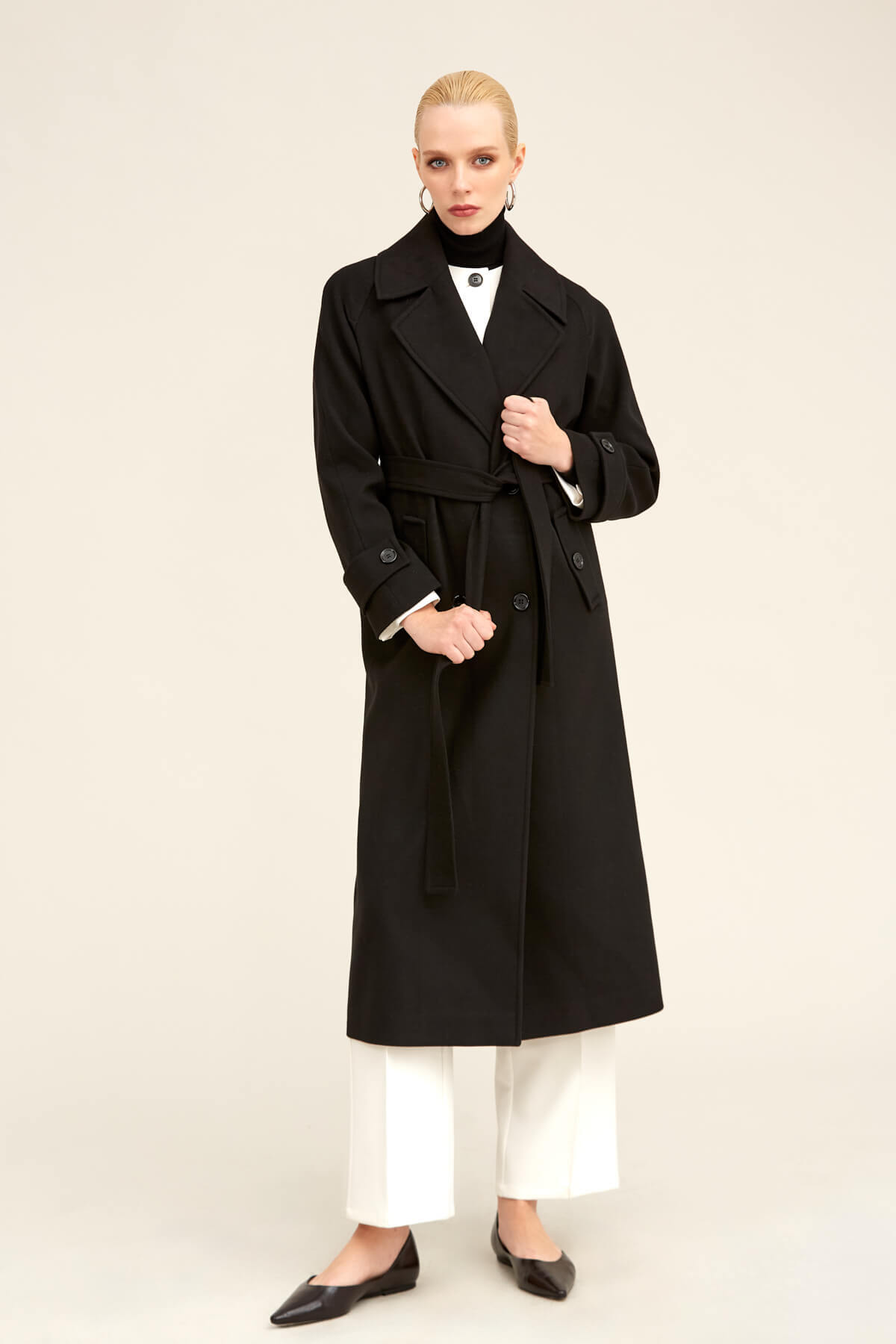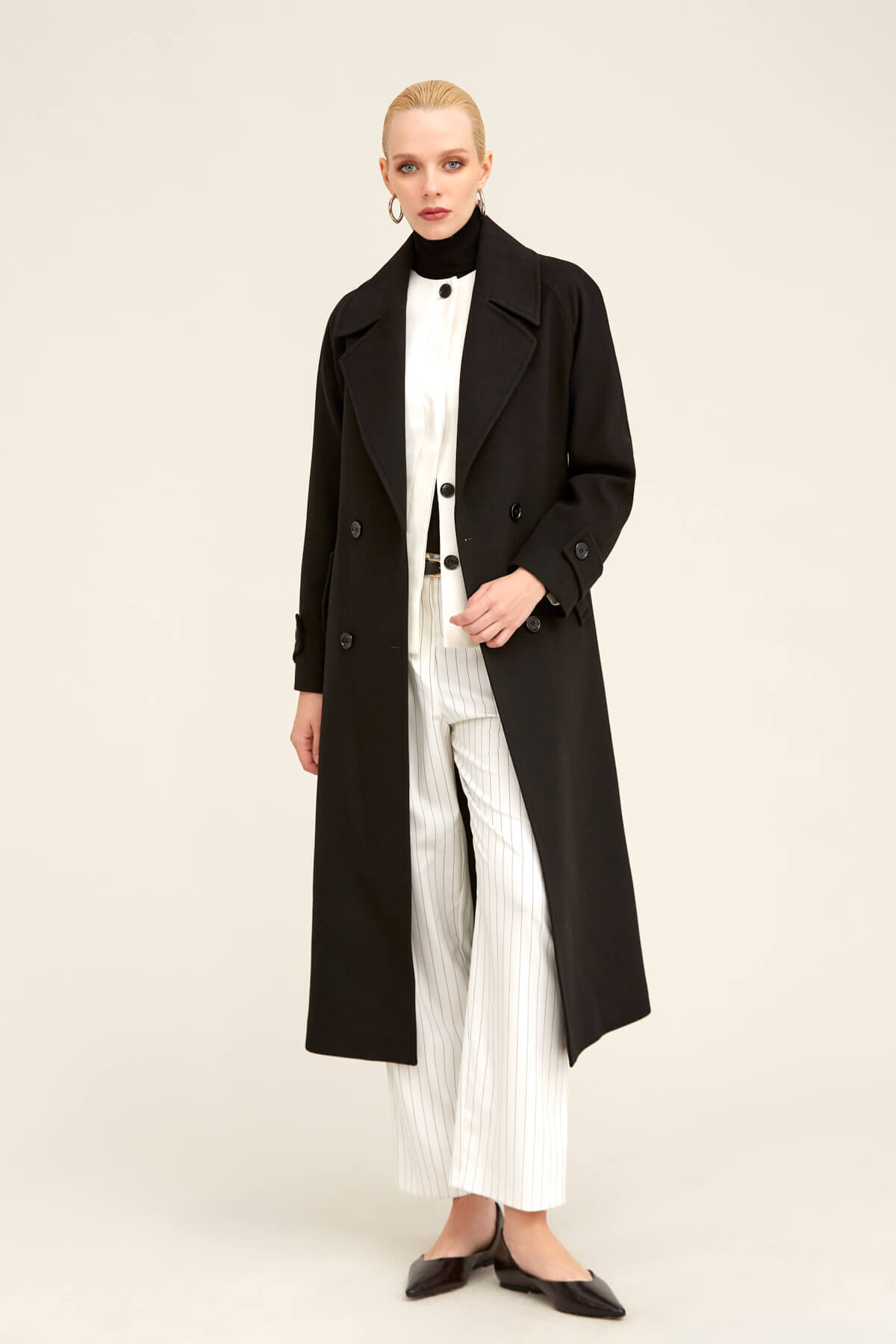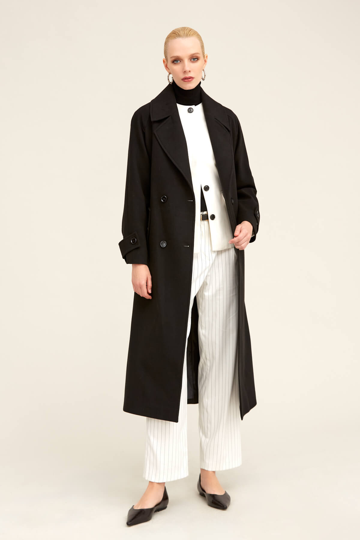 Saykı Woman Siyah Dinamik Fit Ceket Yaka Kaşe Yünlü Manto - 26