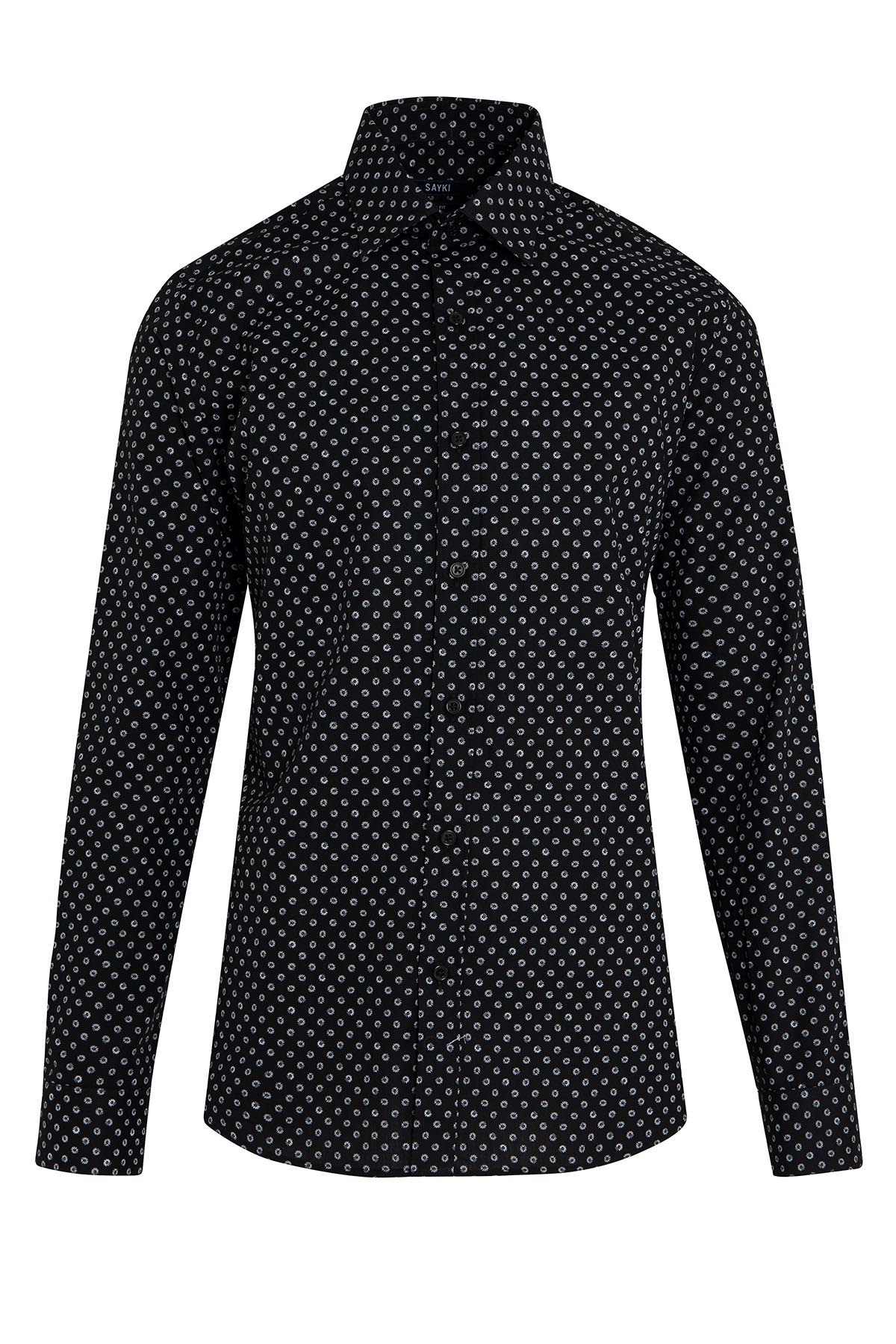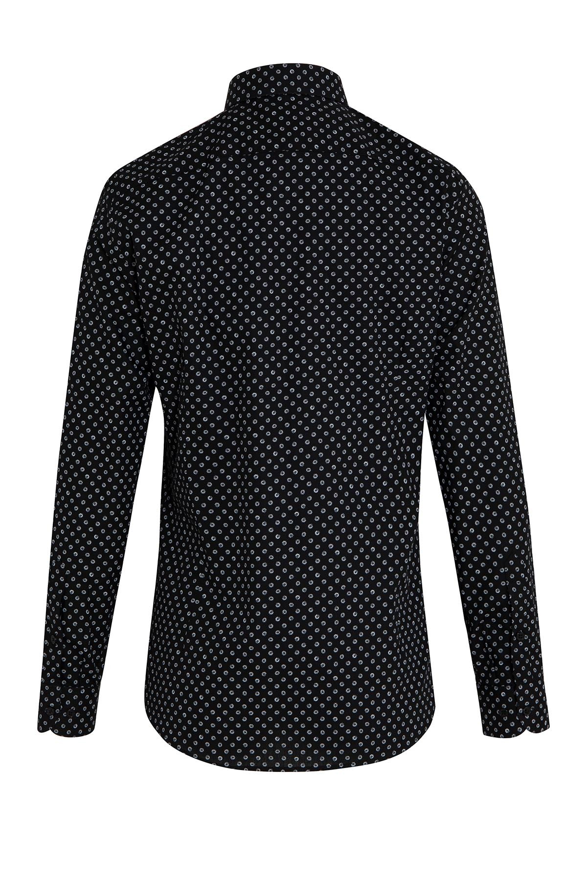 Siyah Slim Fit Baskılı 100% Pamuk Slim Yaka Uzun Kollu Casual Gömlek