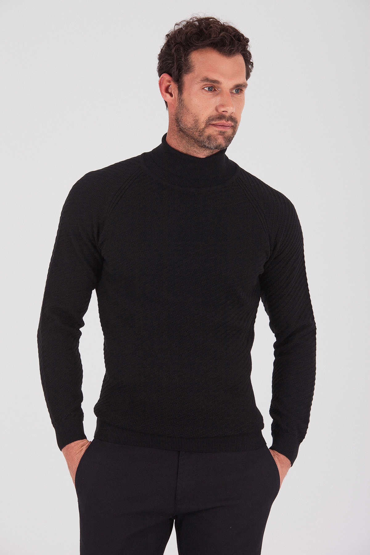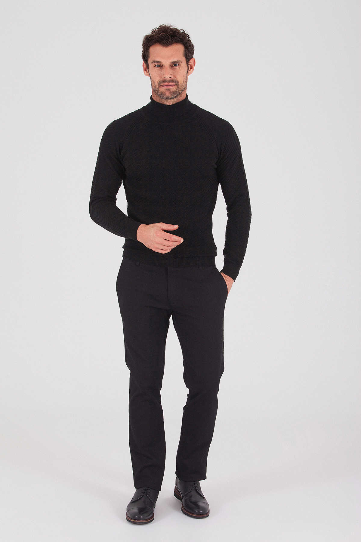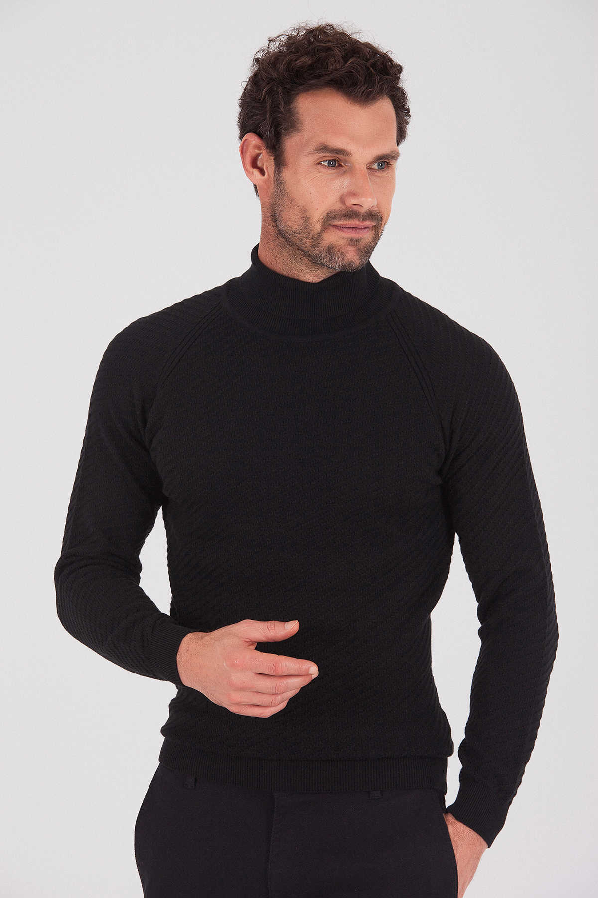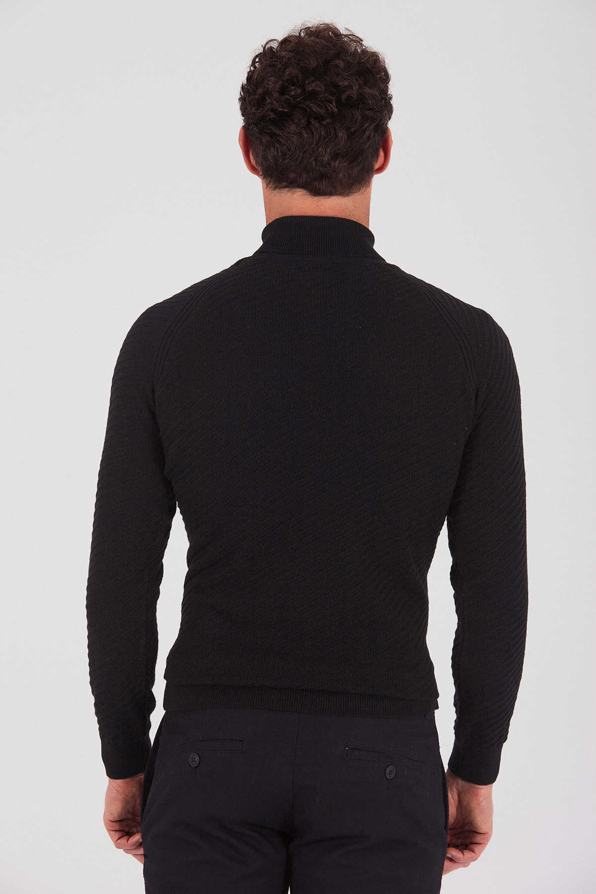 Siyah Balıkçı Yaka Kazak