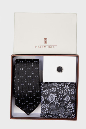 Siyah Basic Kravat Mendil Yaka Rozeti