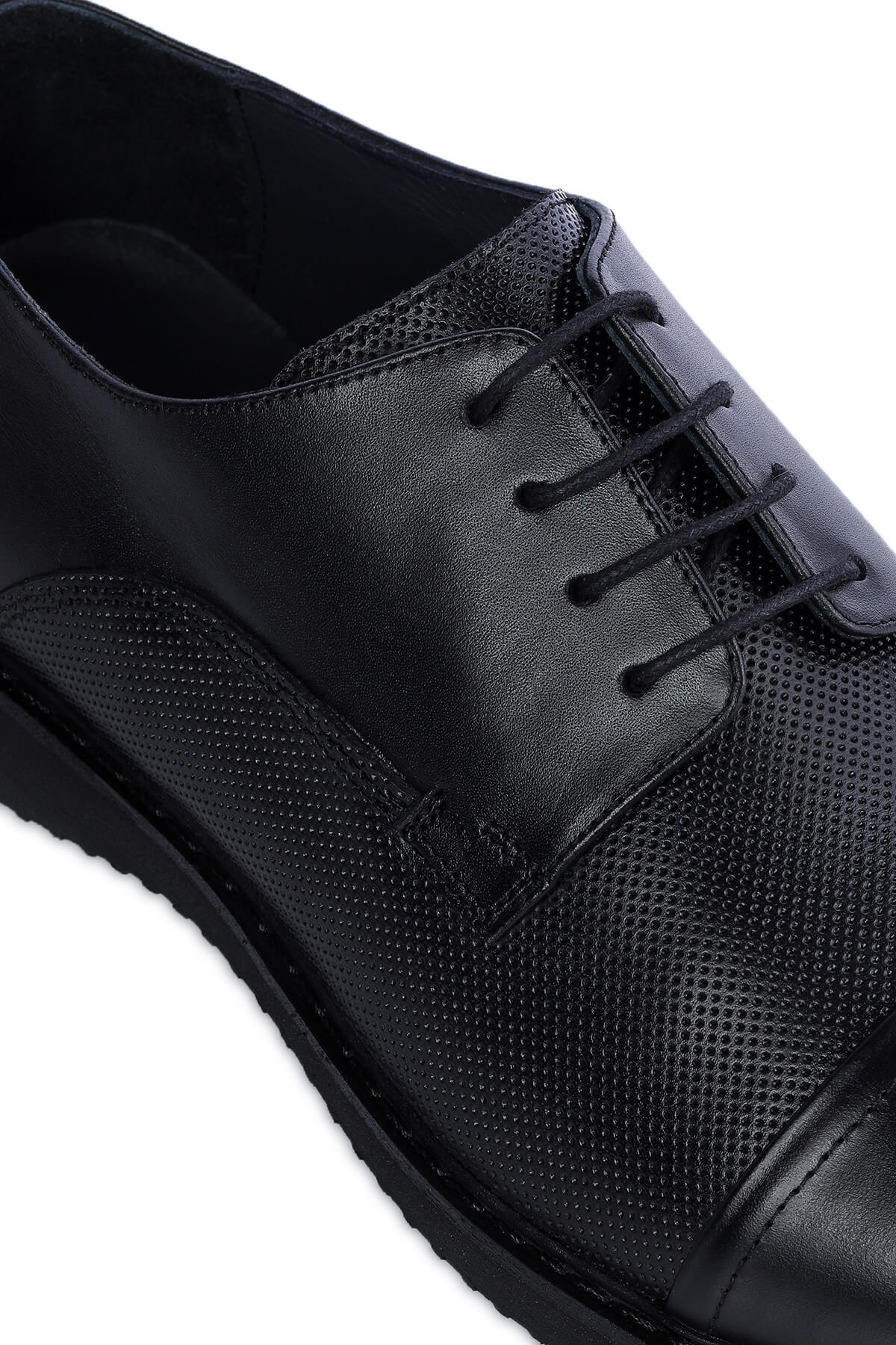 Siyah Casual Bağcıklı Deri Ayakkabı