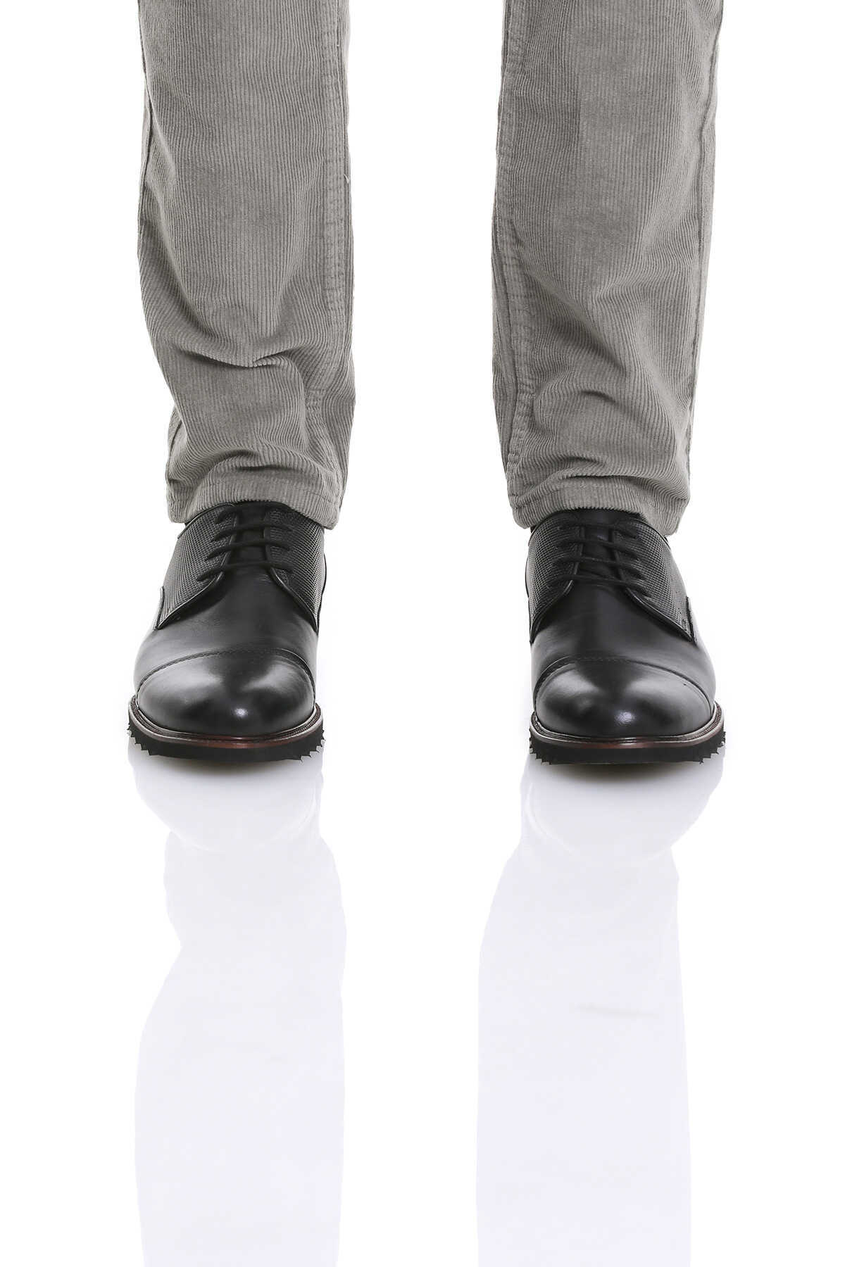 Siyah Casual Bağcıklı Deri Ayakkabı