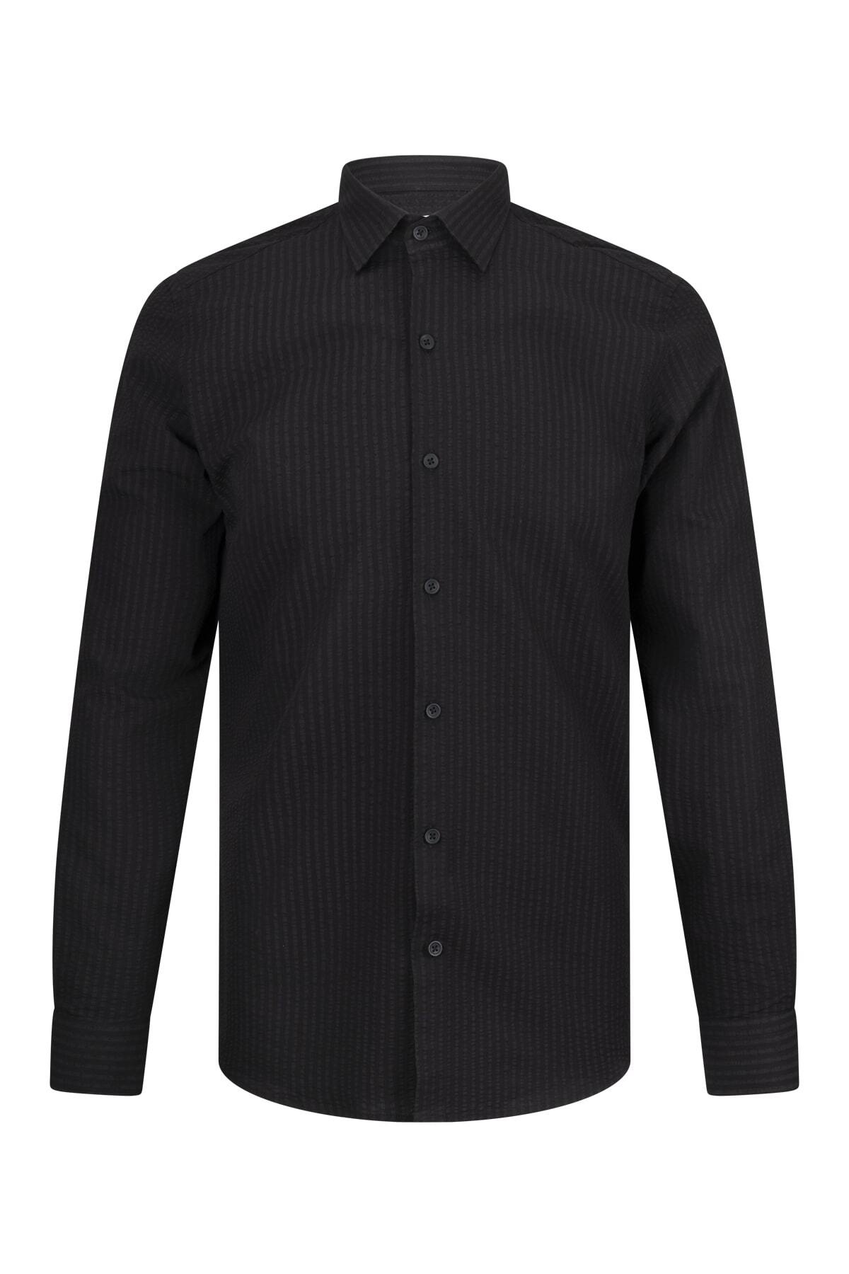 Siyah Slim Yaka Uzun Kollu Gömlek, klasik ve modern çizgilerin buluştuğu zamansız bir parçadır. Kaliteli kumaşı ve zarif deseniyle şık bir duruş sergiler. Gardırobunuzun en kullanışlı parçalarından biri olacak bu gömlek, hem özel günlerde hem de iş hayatında rahatlıkla kullanılabilir.