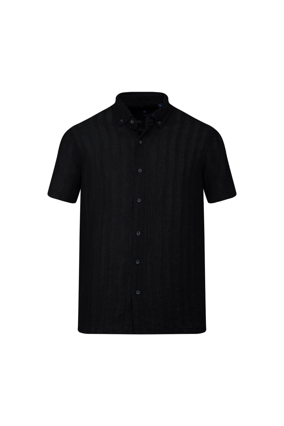 Siyah Comfort Fit Çizgili Düğmeli Yaka 100% Pamuk Kısa Kollu Casual Gömlek