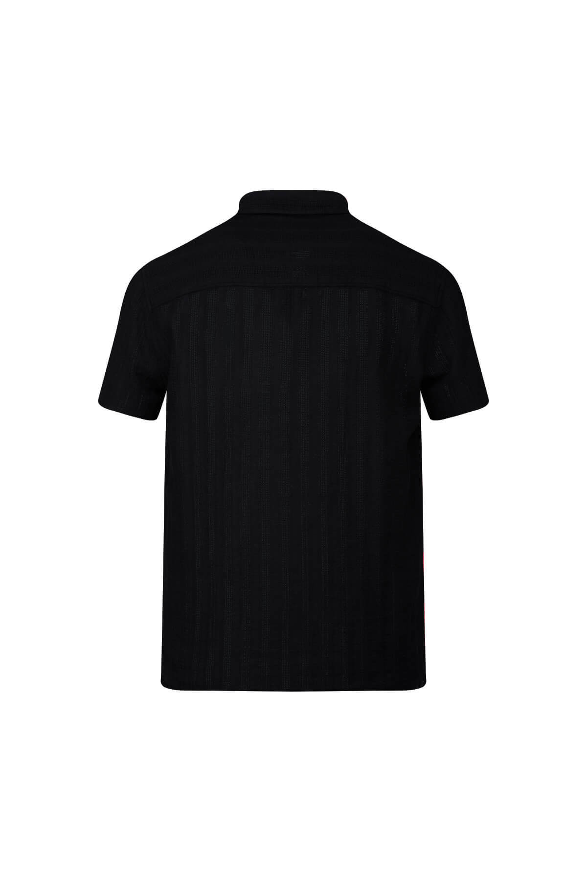 Siyah Comfort Fit Çizgili Düğmeli Yaka 100% Pamuk Kısa Kollu Casual Gömlek - 3