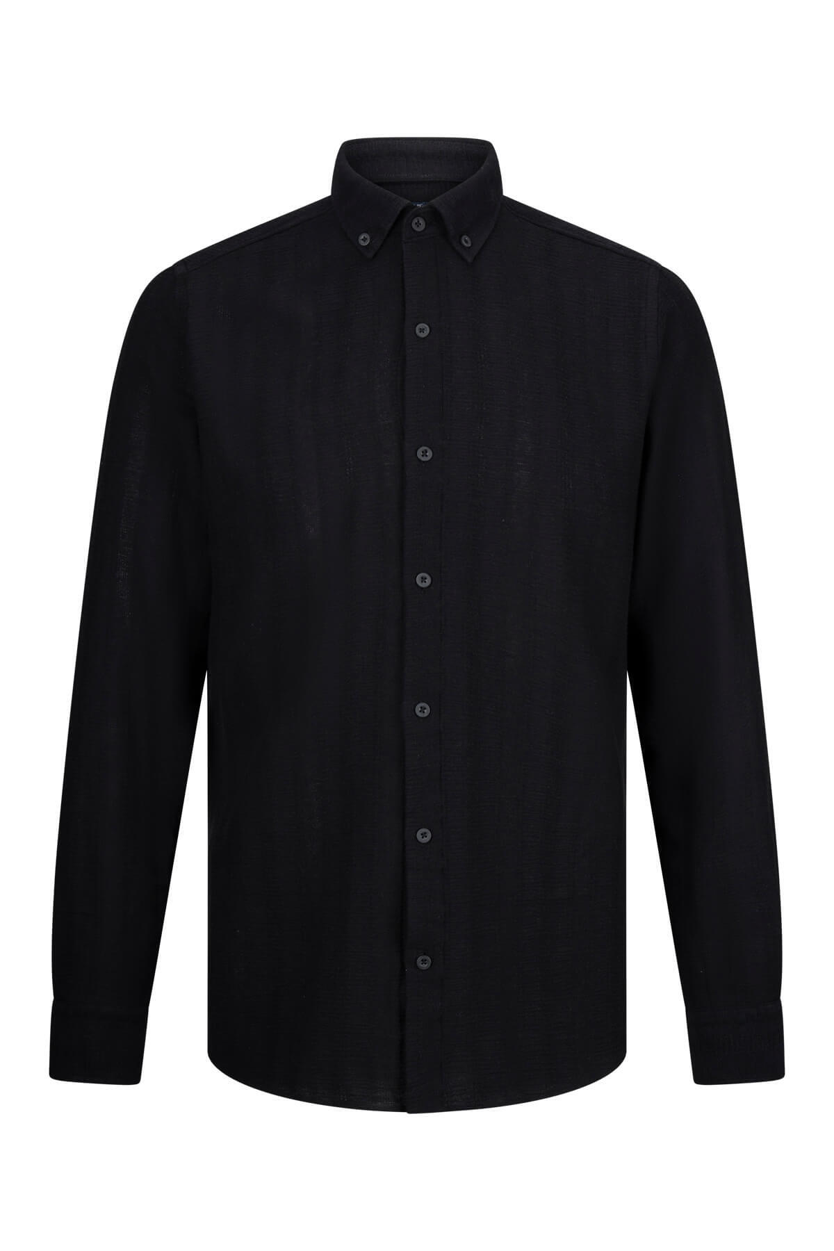 Siyah Comfort Fit Düğmeli Yaka Uzun Kollu Pamuklu Gömlek