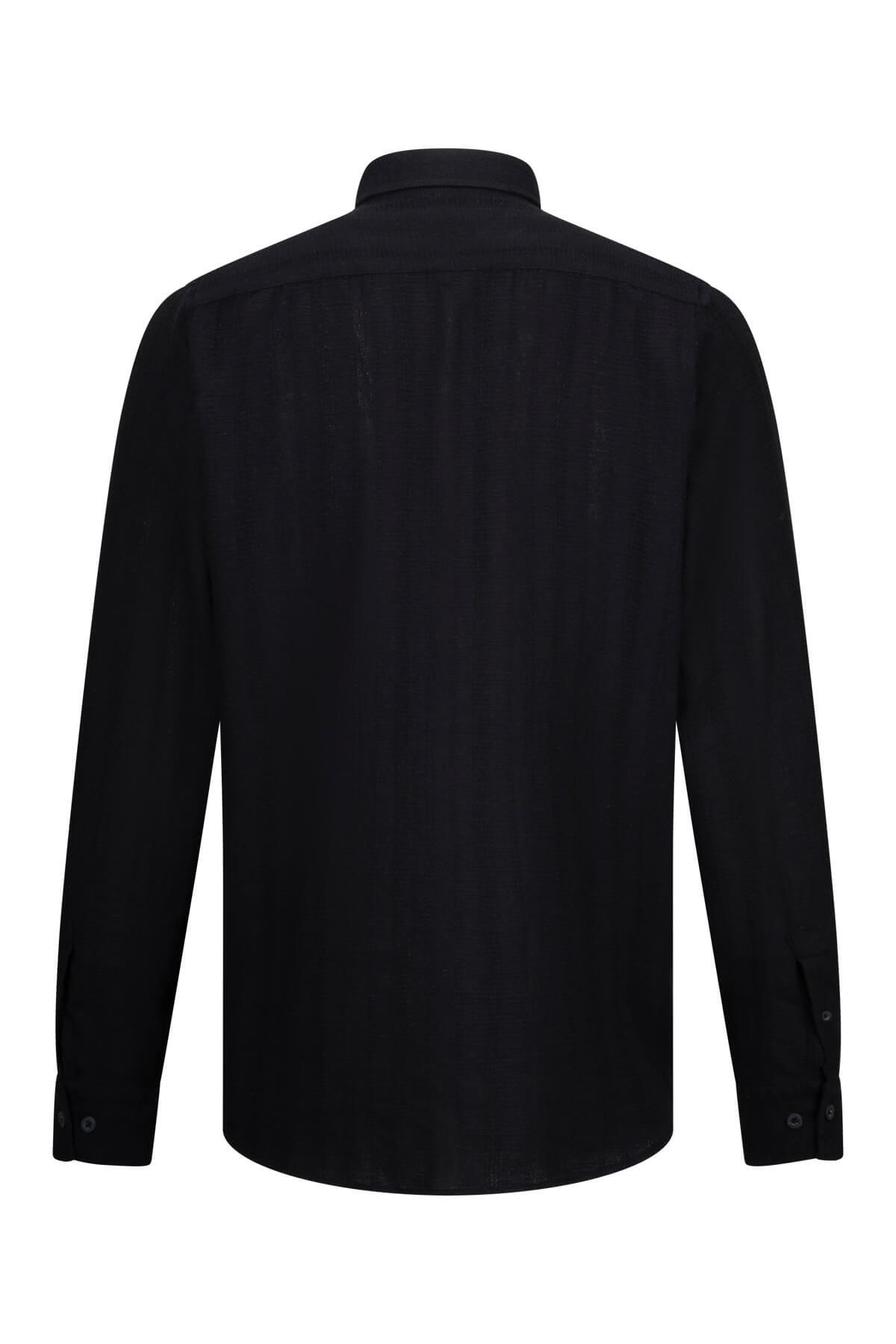 Siyah Comfort Fit Düğmeli Yaka Uzun Kollu Pamuklu Gömlek - 2