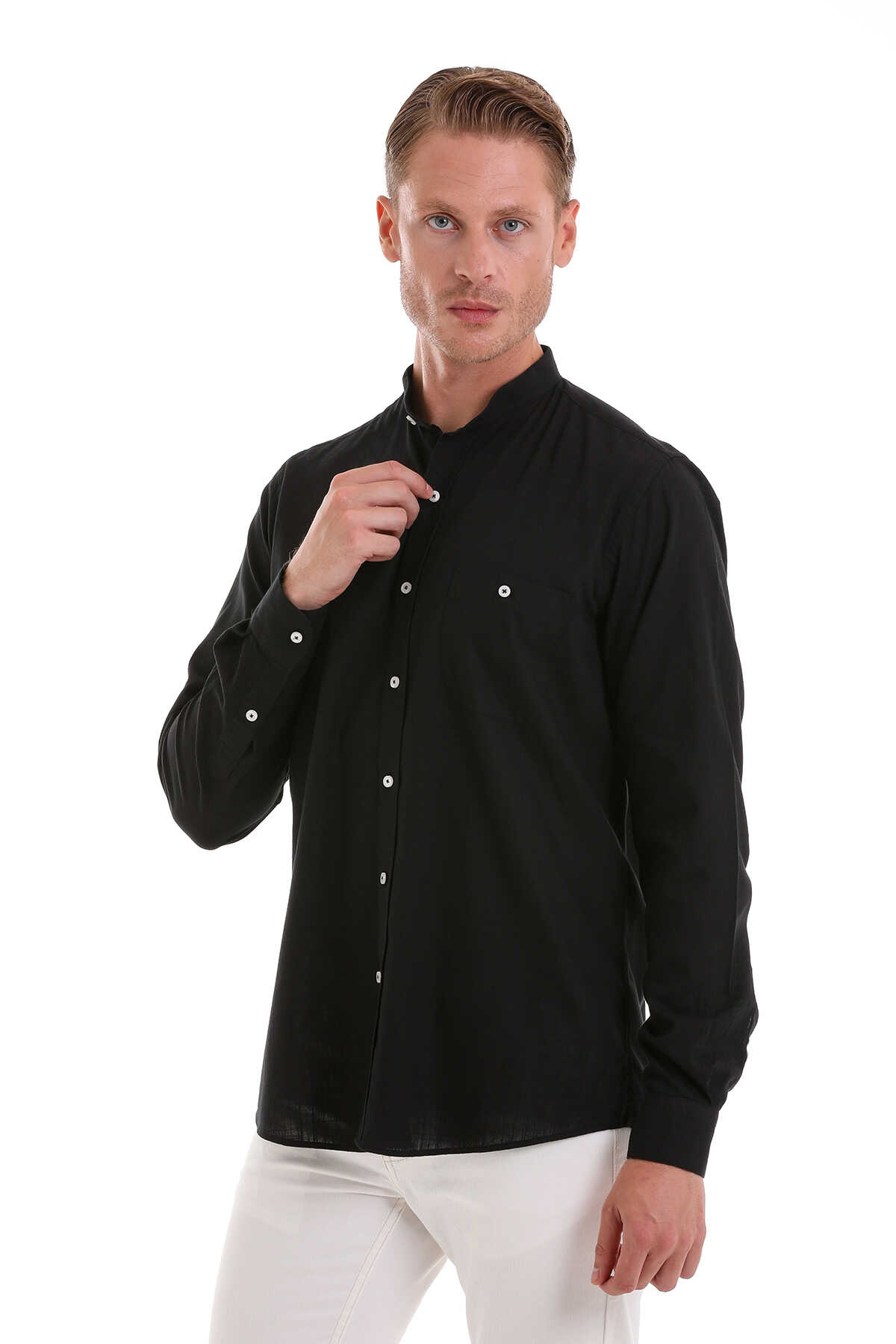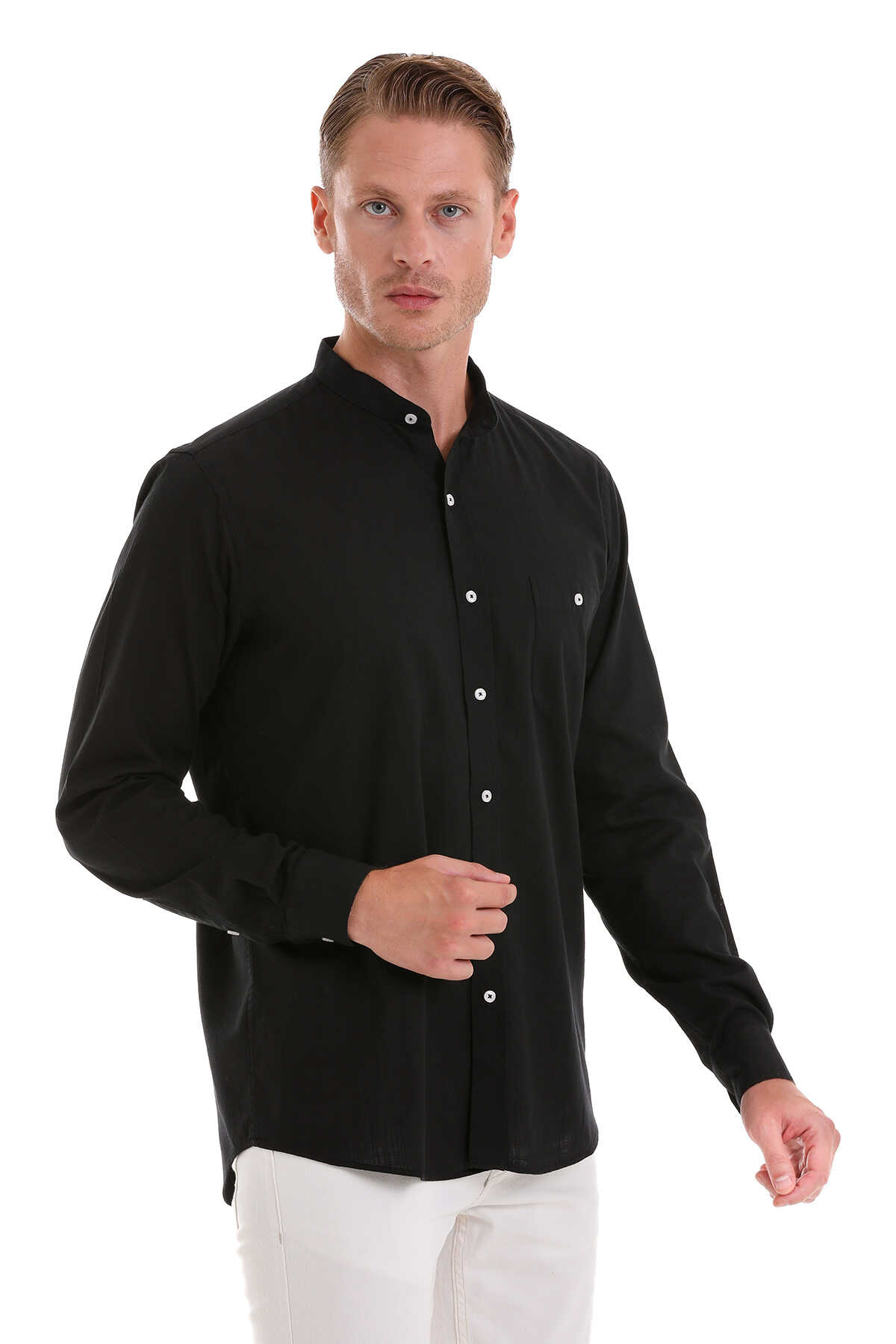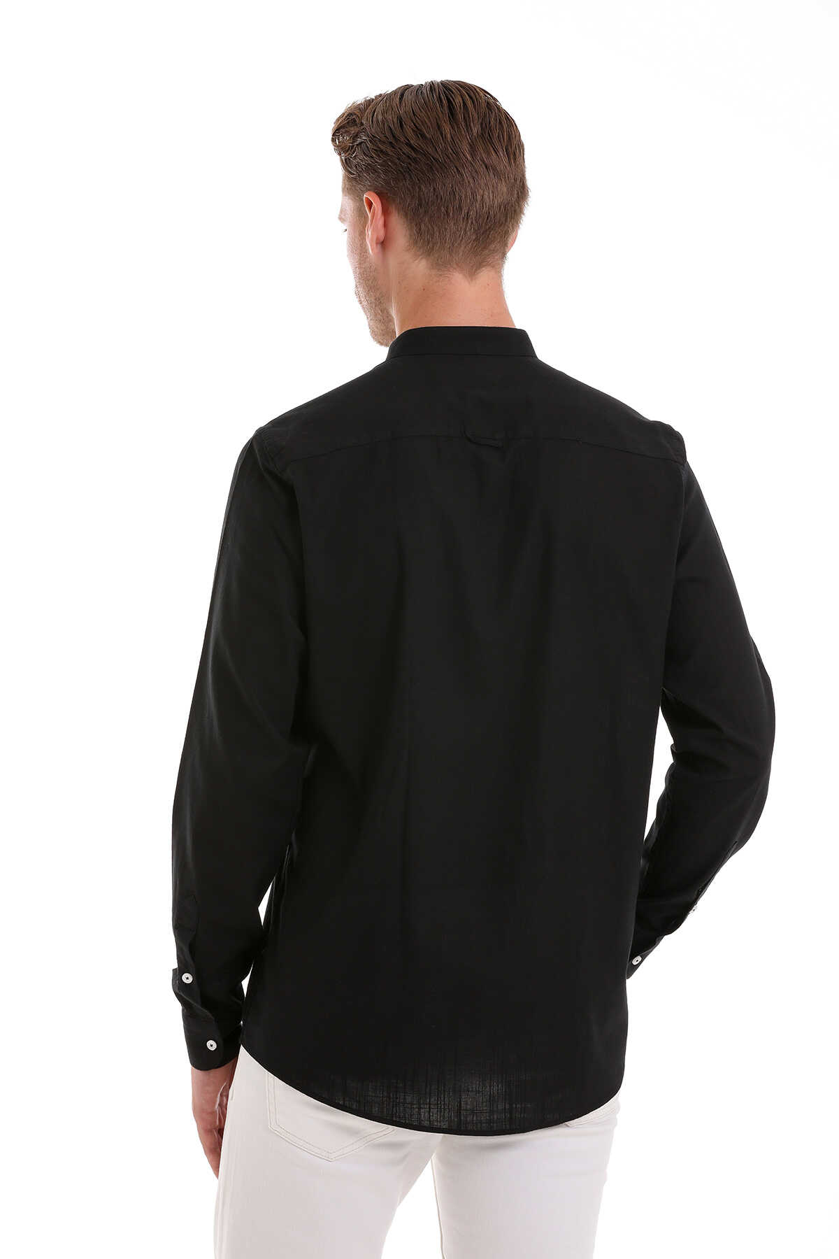 Siyah Comfort Fit 100% Pamuk Hakim Yaka Uzun Kollu Spor Gömlek