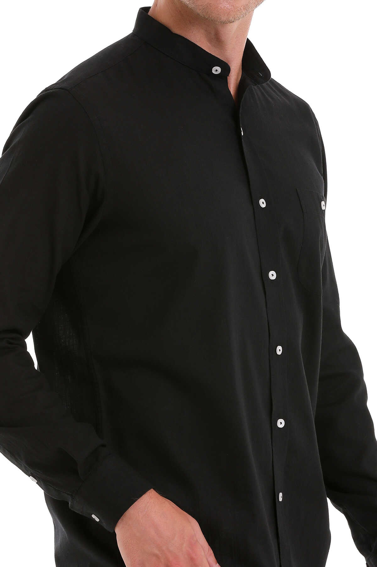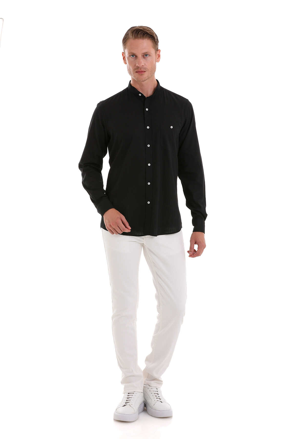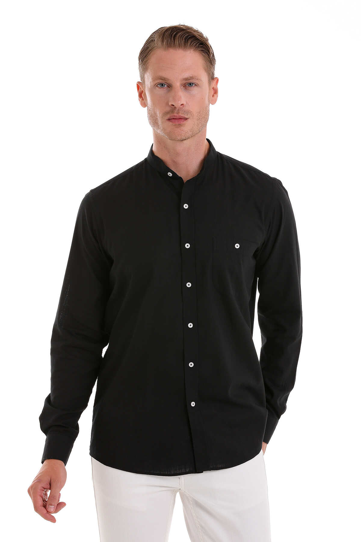 Siyah Comfort Fit 100% Pamuk Hakim Yaka Uzun Kollu Spor Gömlek