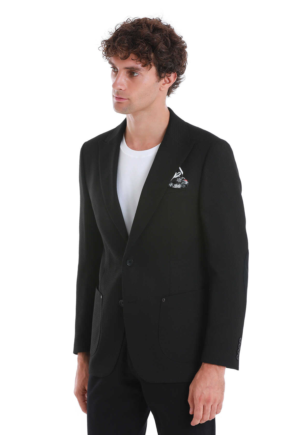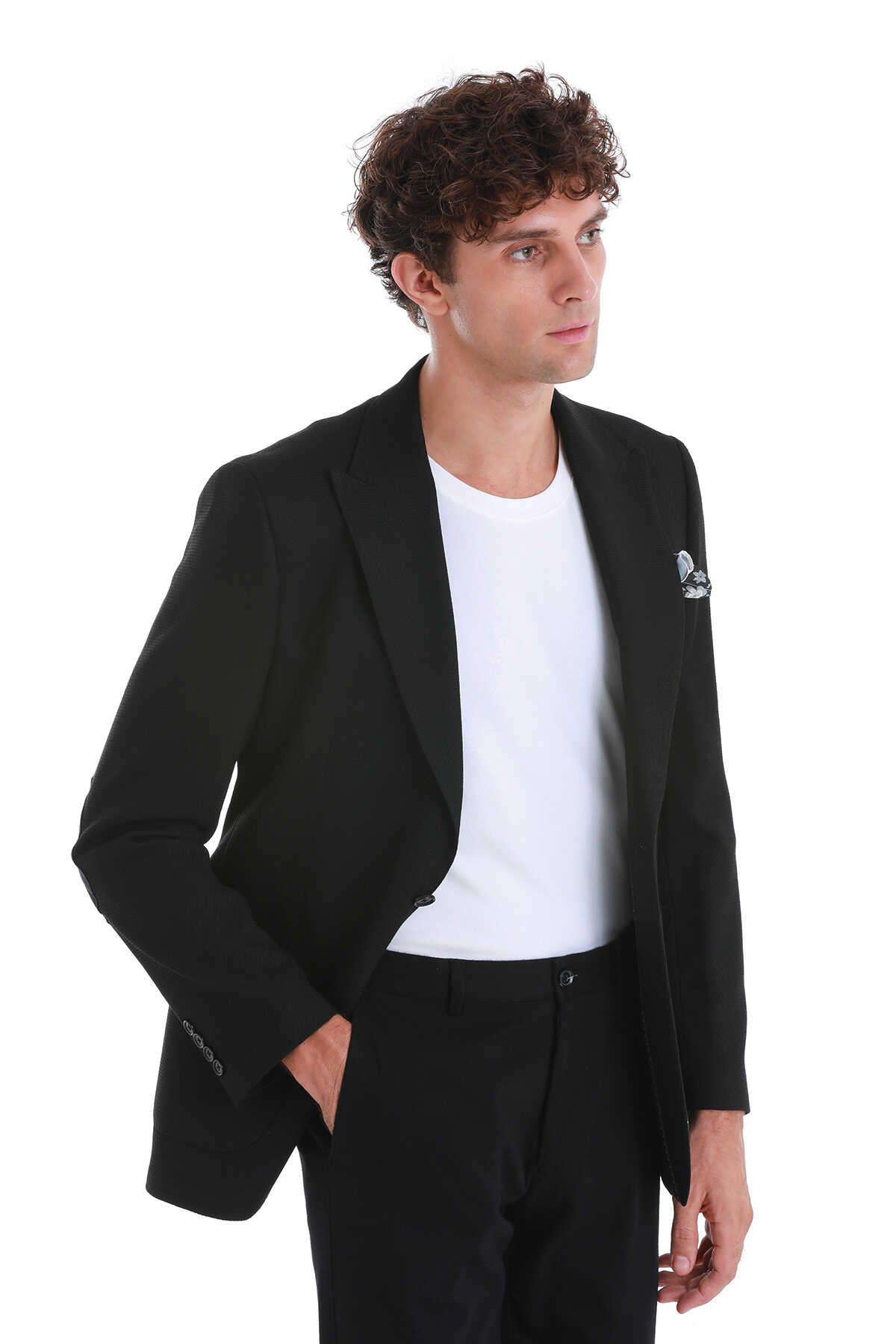 Siyah Comfort Fit Sivri Yaka Klasik Ceket