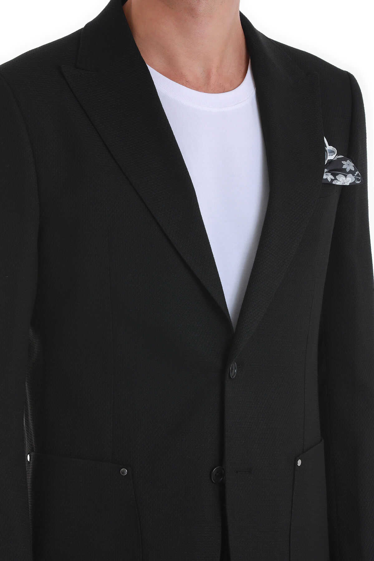 Siyah Comfort Fit Sivri Yaka Klasik Ceket - 8