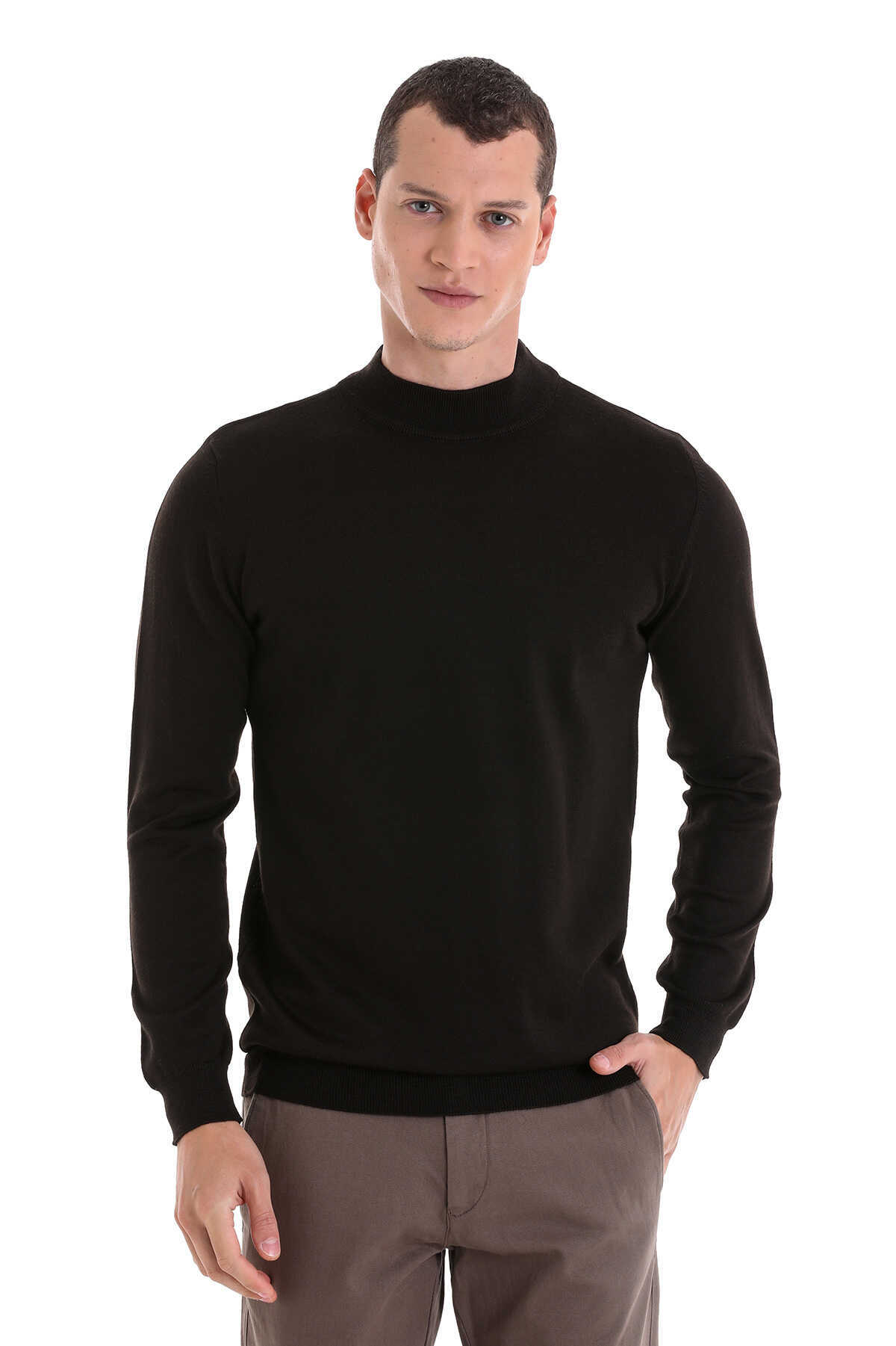 Siyah Comfort Fit Yarım Balıkçı Yaka Yünlü Triko Kazak