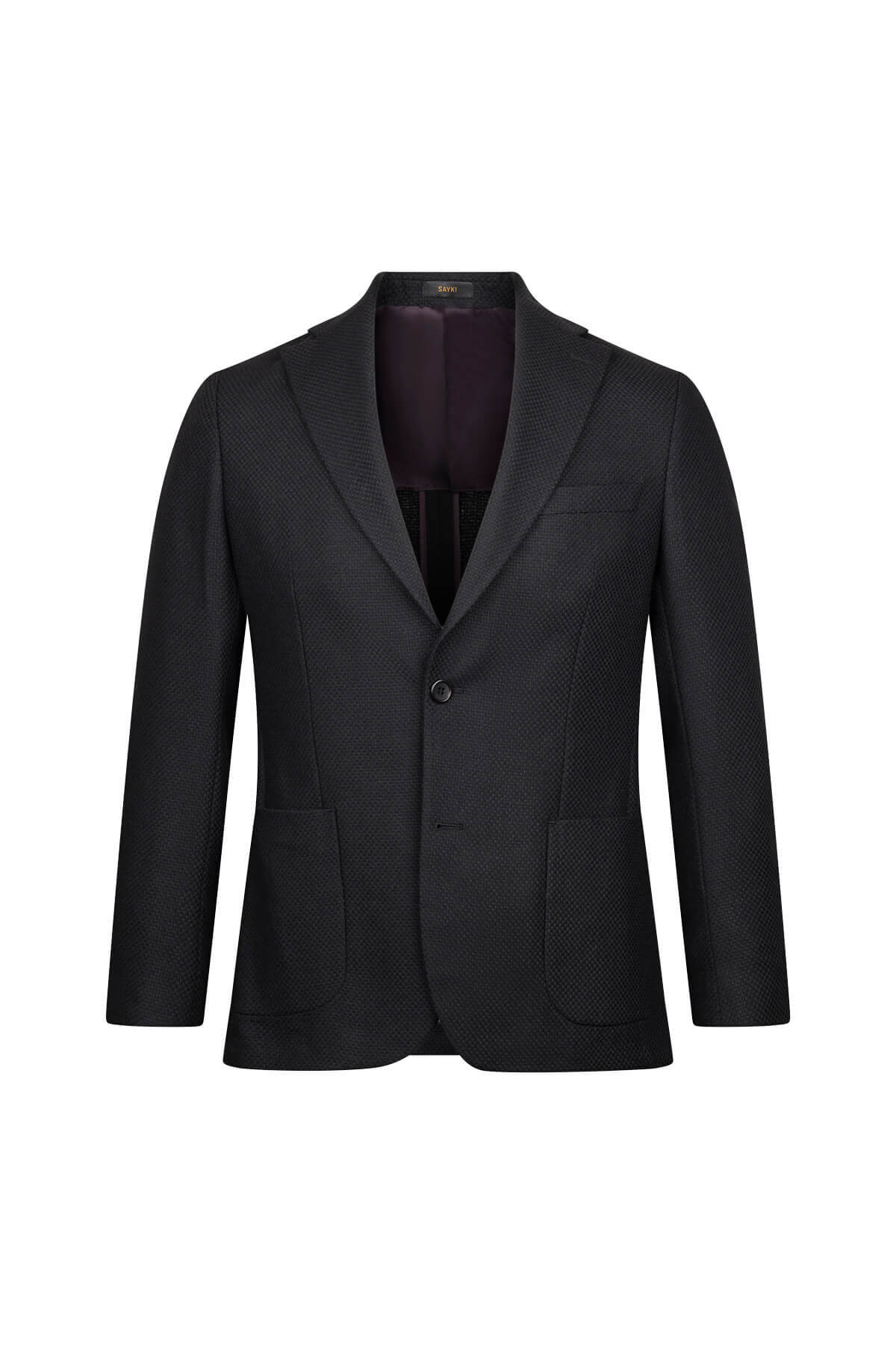 Siyah Comfort Fit Mono Yaka Yünlü Klasik Ceket