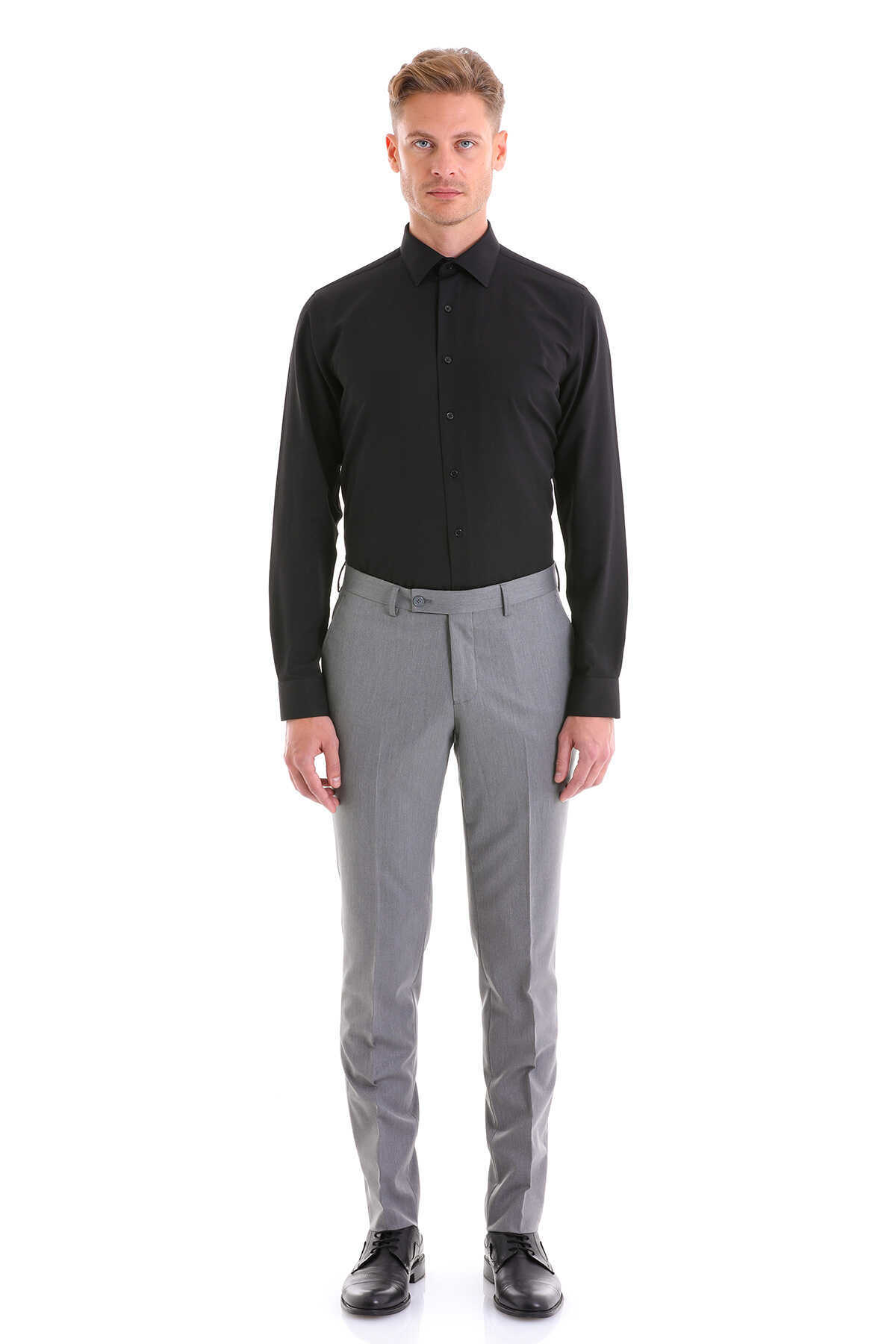 Siyah Comfort Fit Desenli Pamuklu Slim Yaka Uzun Kollu Klasik Gömlek