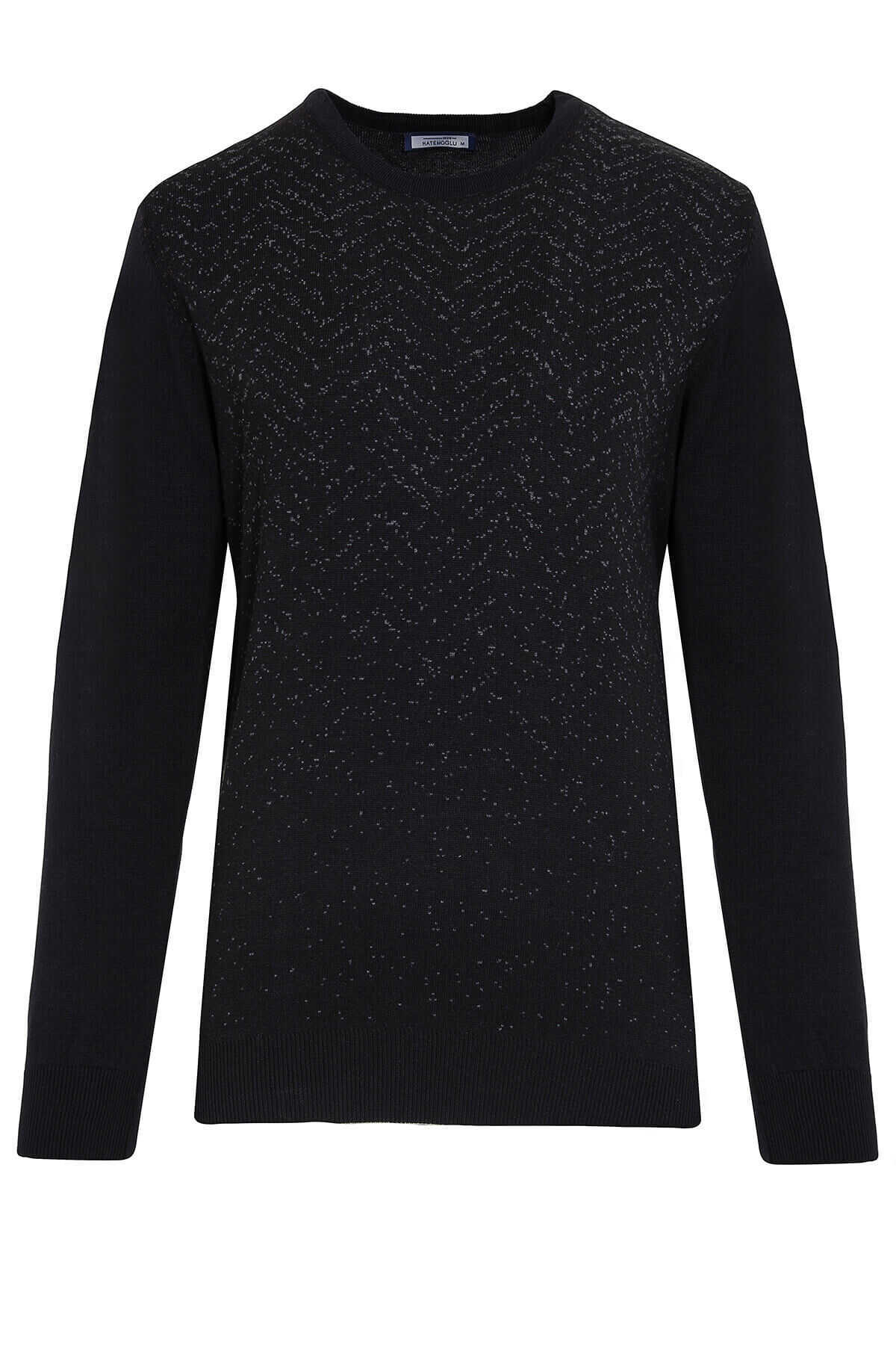 Siyah Desenli Bisiklet Yaka Triko Kazak