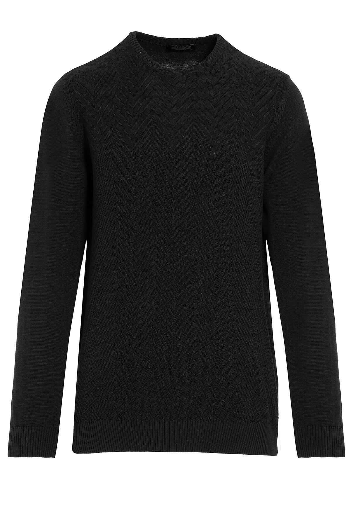 Siyah Regular Fit Desenli Pamuklu Bisiklet Yaka Triko Kazak
