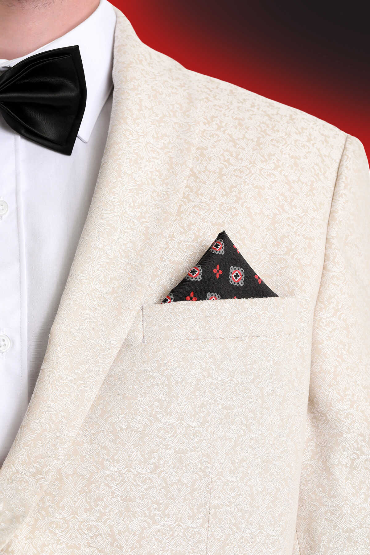 Siyah Desenli Cep Mendili, takım elbiselerinize modern ve şık bir dokunuş katmak için tasarlanmış bir aksesuardır. Düz saten kumaşıyla dikkat çekerken, her türlü resmi kıyafetle uyum sağlar. %100 polyesterden üretilen kumaşı, ürüne parlak ve ipeksi bir doku kazandırır.