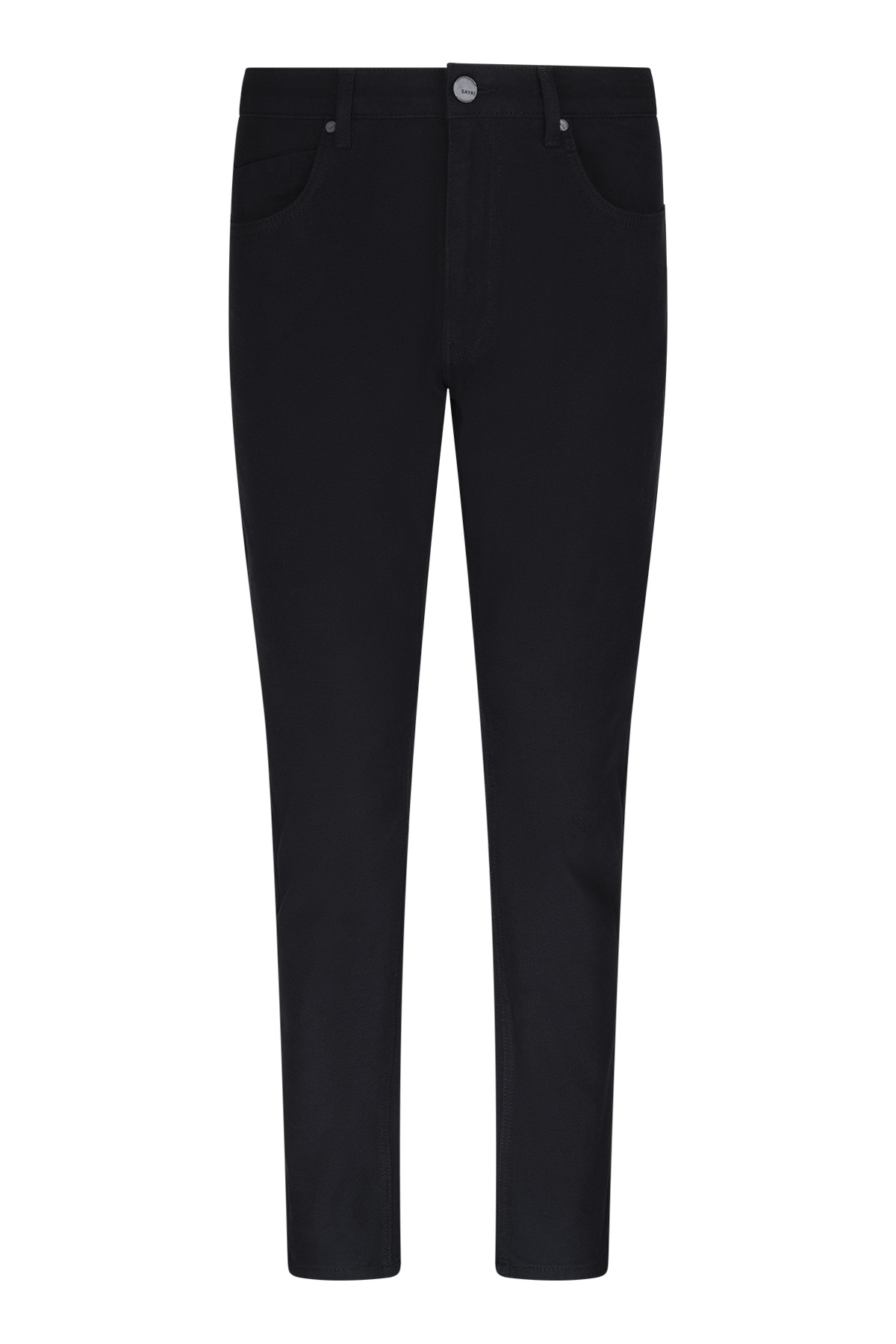 Siyah Rahat Kesim 5 Cep Pamuklu Kanvas Pantolon, şıklığı ve günlük konforu birleştiren modern bir parçadır. %83 pamuk, %15 polyester ve %2 elastan karışımı sayesinde, hem pamuğun doğal yumuşaklığını ve nefes alabilirliğini sunar hem de elastanın esnekliğiyle hareket özgürlüğü sağlar. "Dinamik Fit" kalıbı, vücuda oturan ancak hareketleri kısıtlamayan bir kesim sunar. 5 cep detayı ise, pantolona klasik ve fonksiyonel bir görünüm kazandırır.