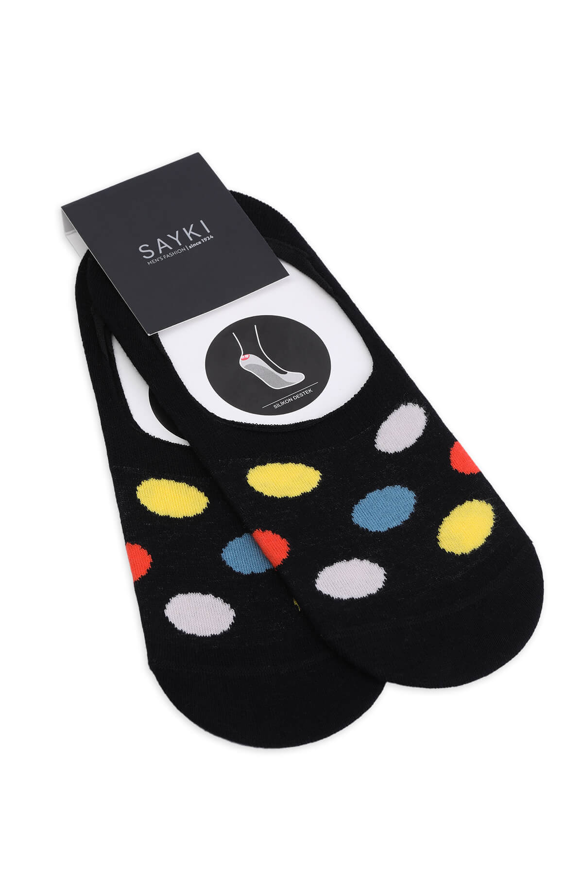 Siyah İkili Puantiyeli Pamuklu Babet Çorap - 1