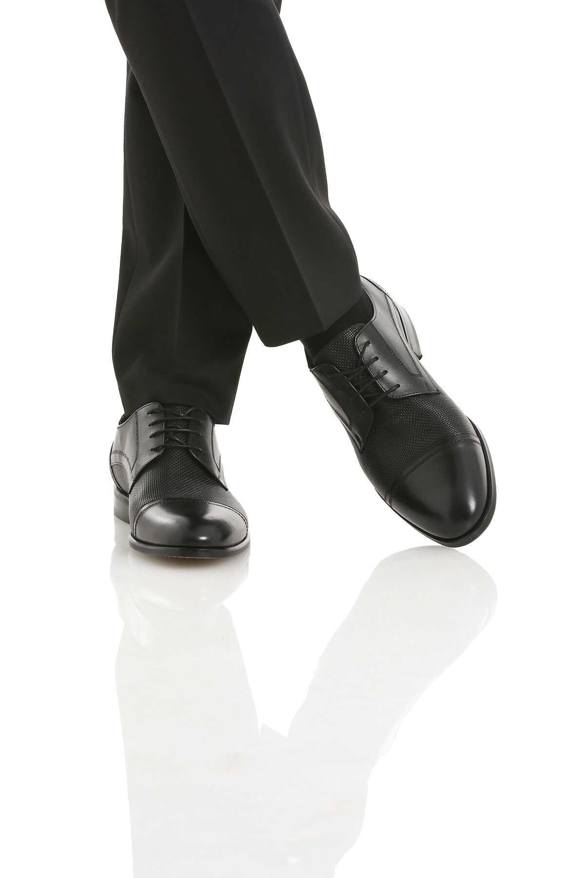 Siyah Klasik Bağcıklı Deri Ayakkabı
