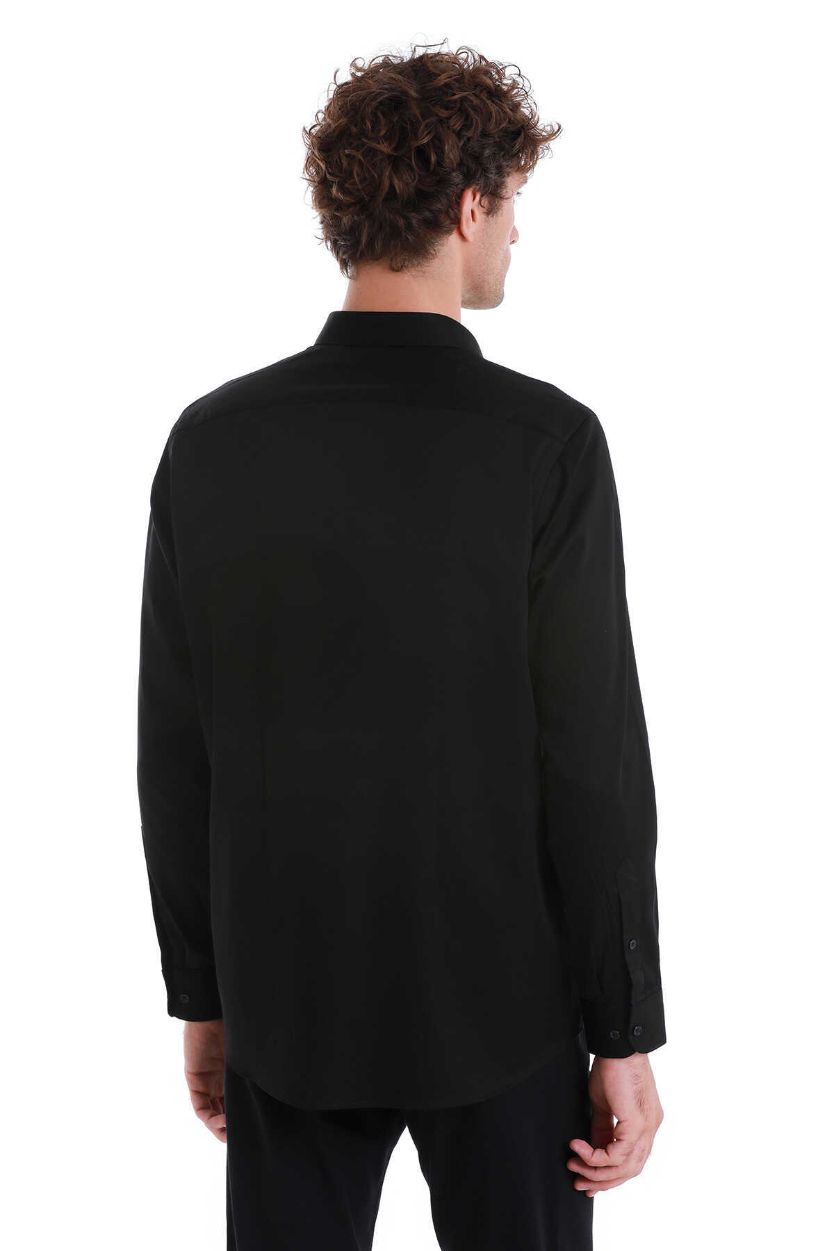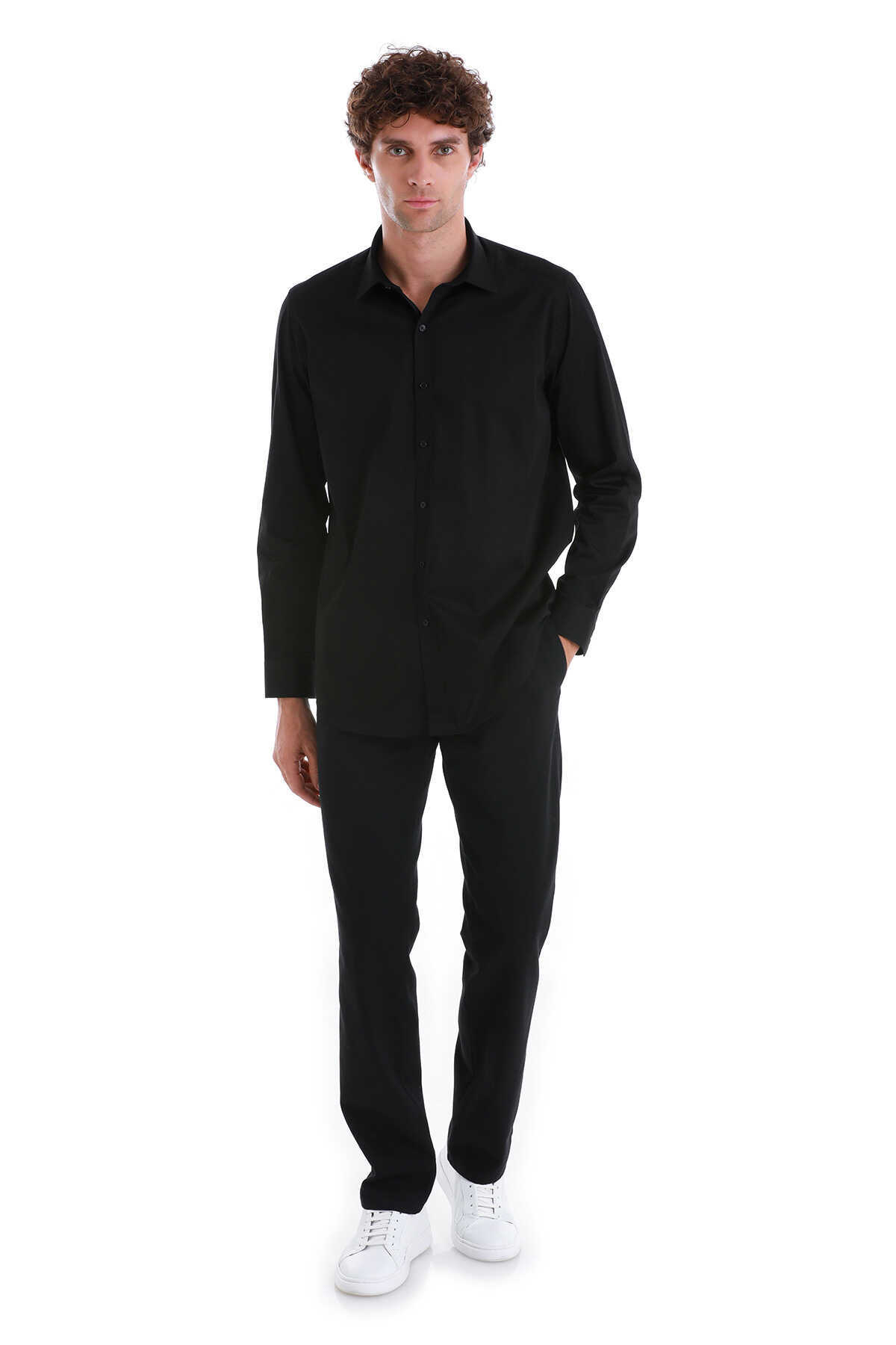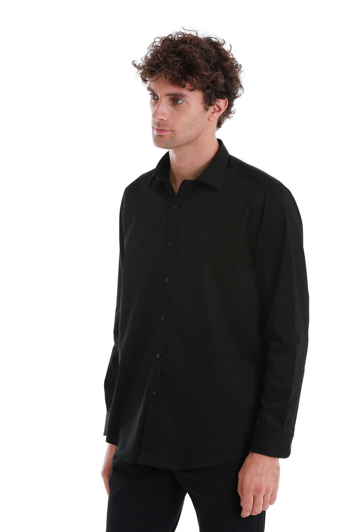 Siyah Klasik Fit 100% Pamuk Slim Yaka Uzun Kollu Saten Gömlek
