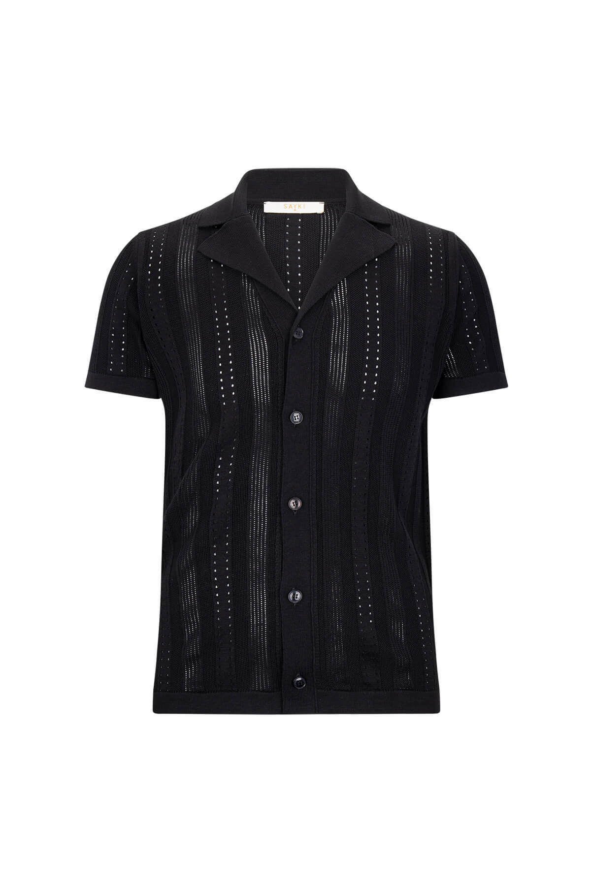 Siyah Regular Fit Apaş Yaka Gömlek Tişört