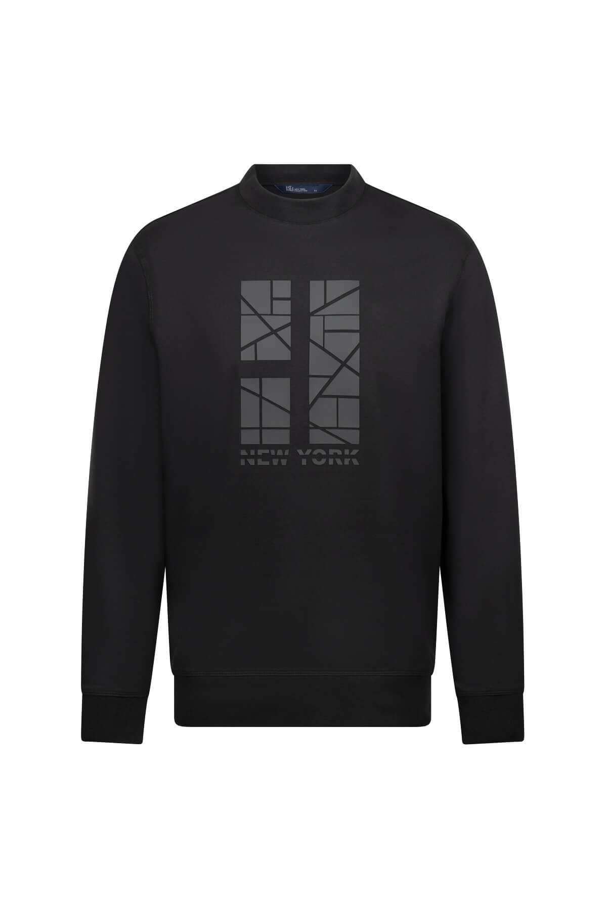 Siyah Regular Fit Baskılı Pamuklu Bisiklet Yaka Sweatshirt