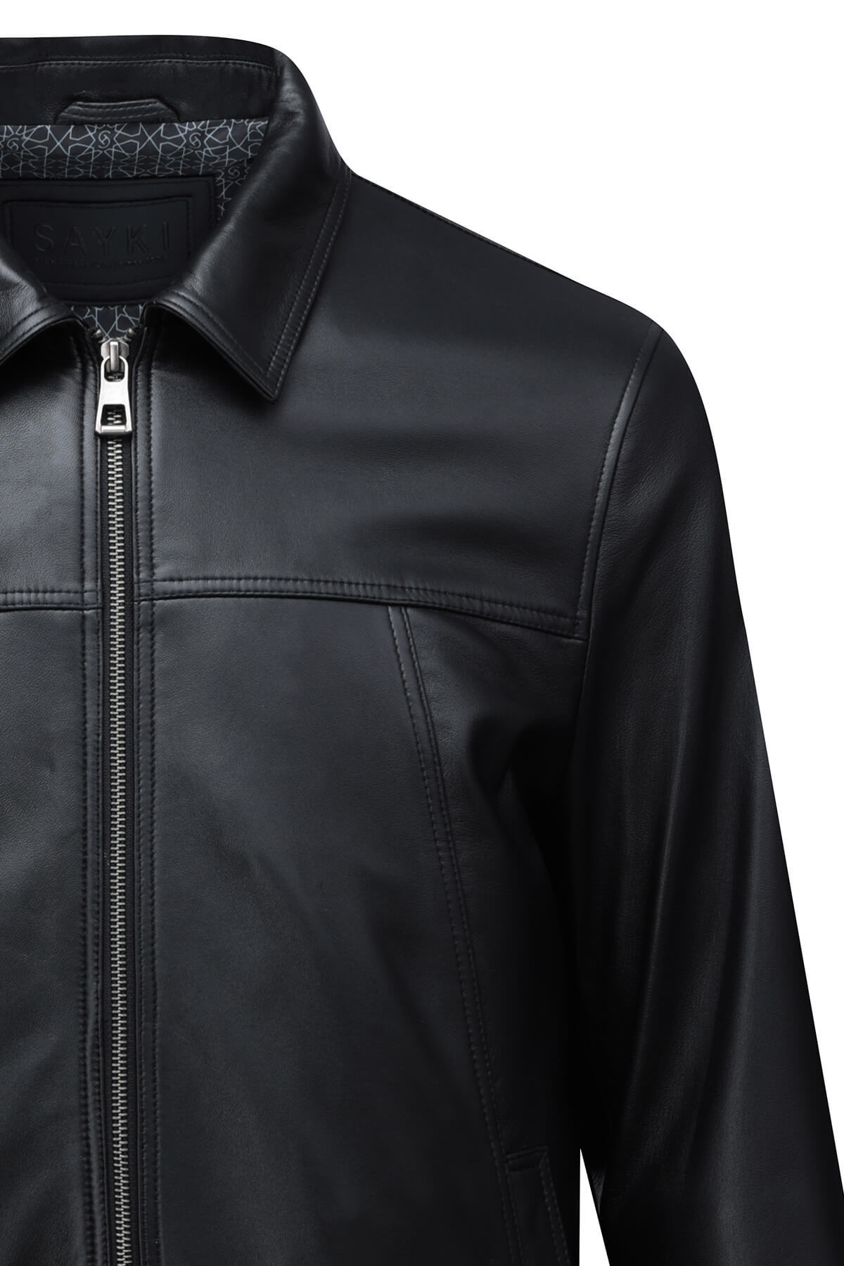 Siyah Regular Fit Bebe Yaka 100% Hakiki Deri Mont