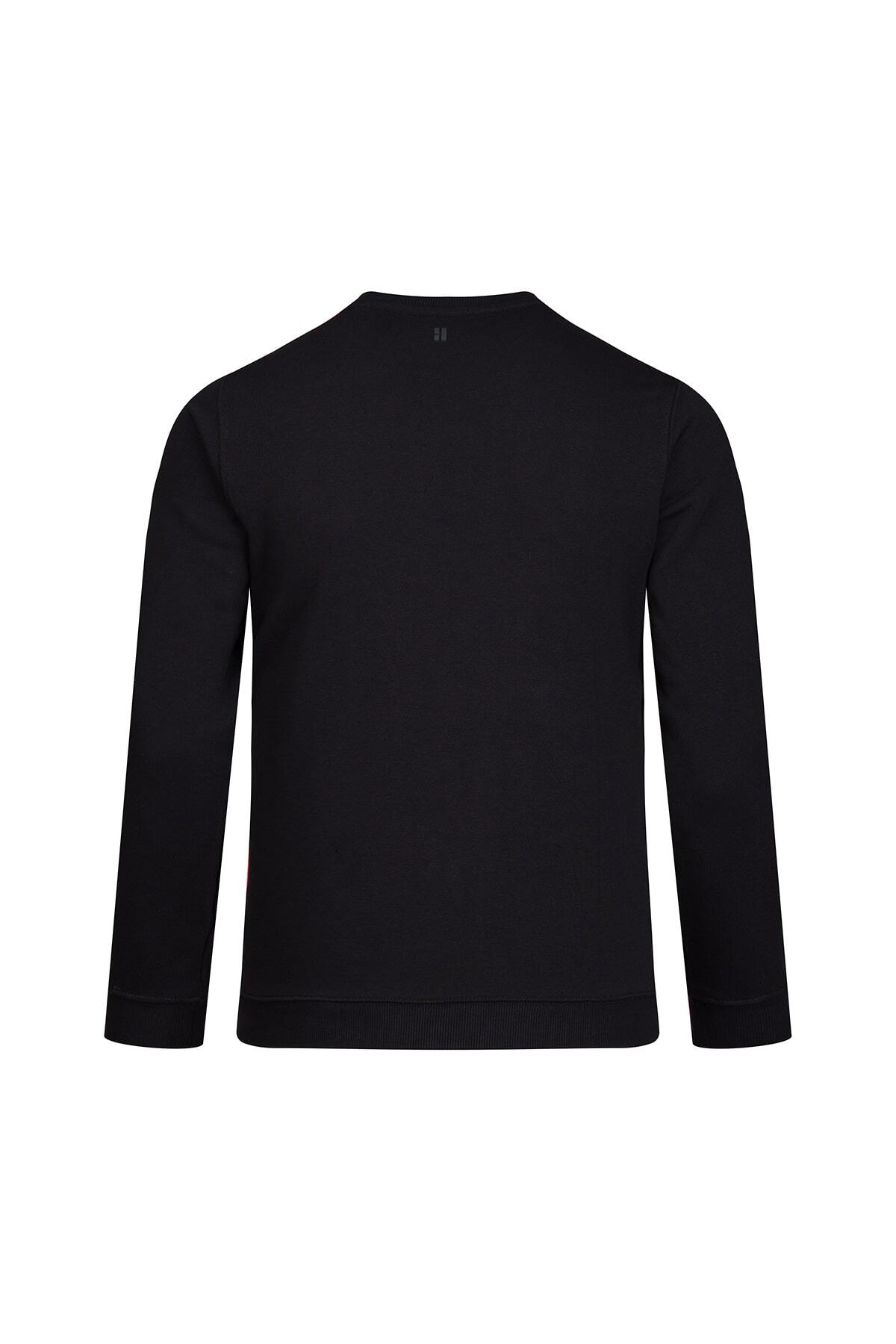 Siyah Regular Fit Bisiklet Yaka 100% Pamuk Sweatshirt - 3