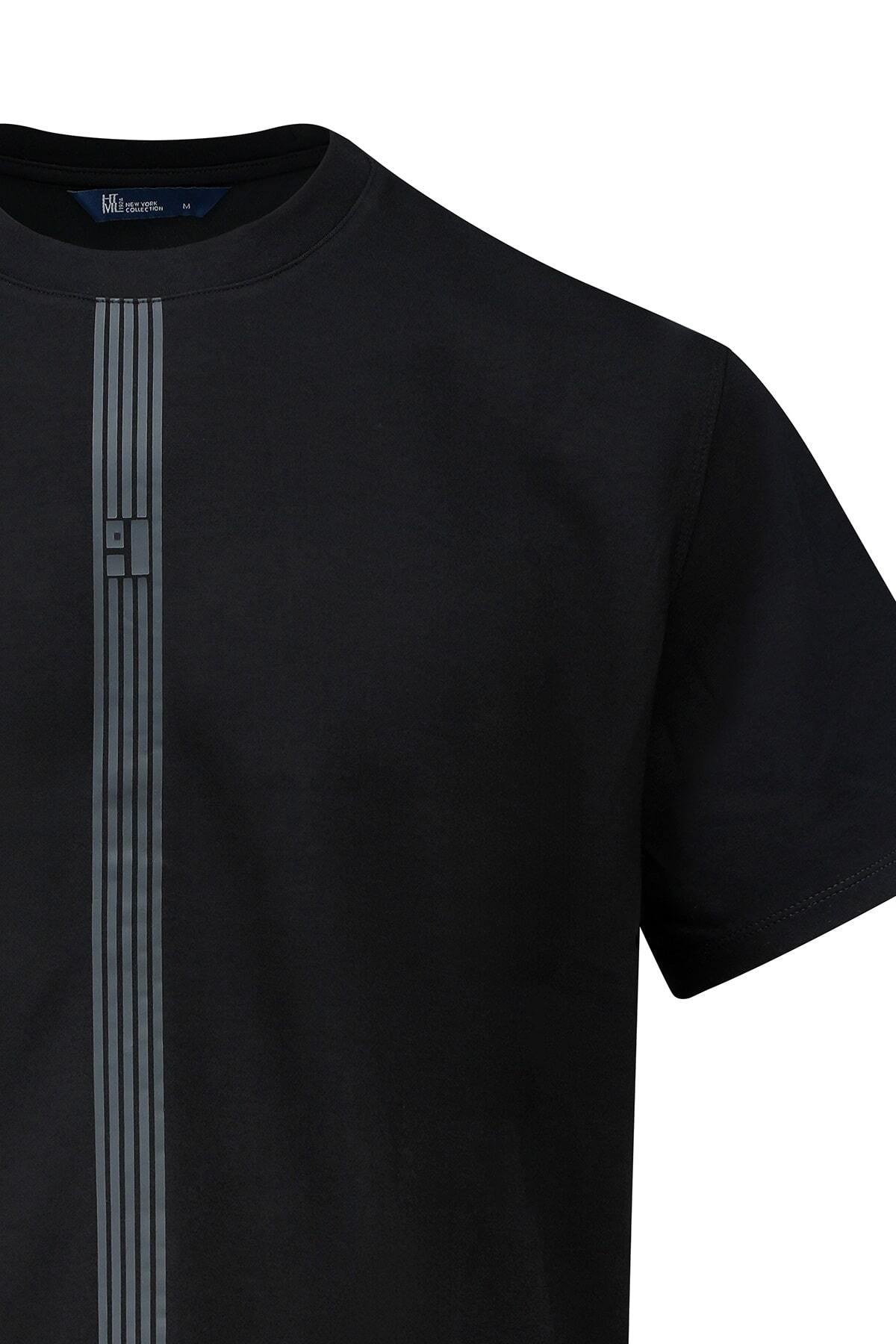Siyah Regular Fit Bisiklet Yaka Tişört - 3