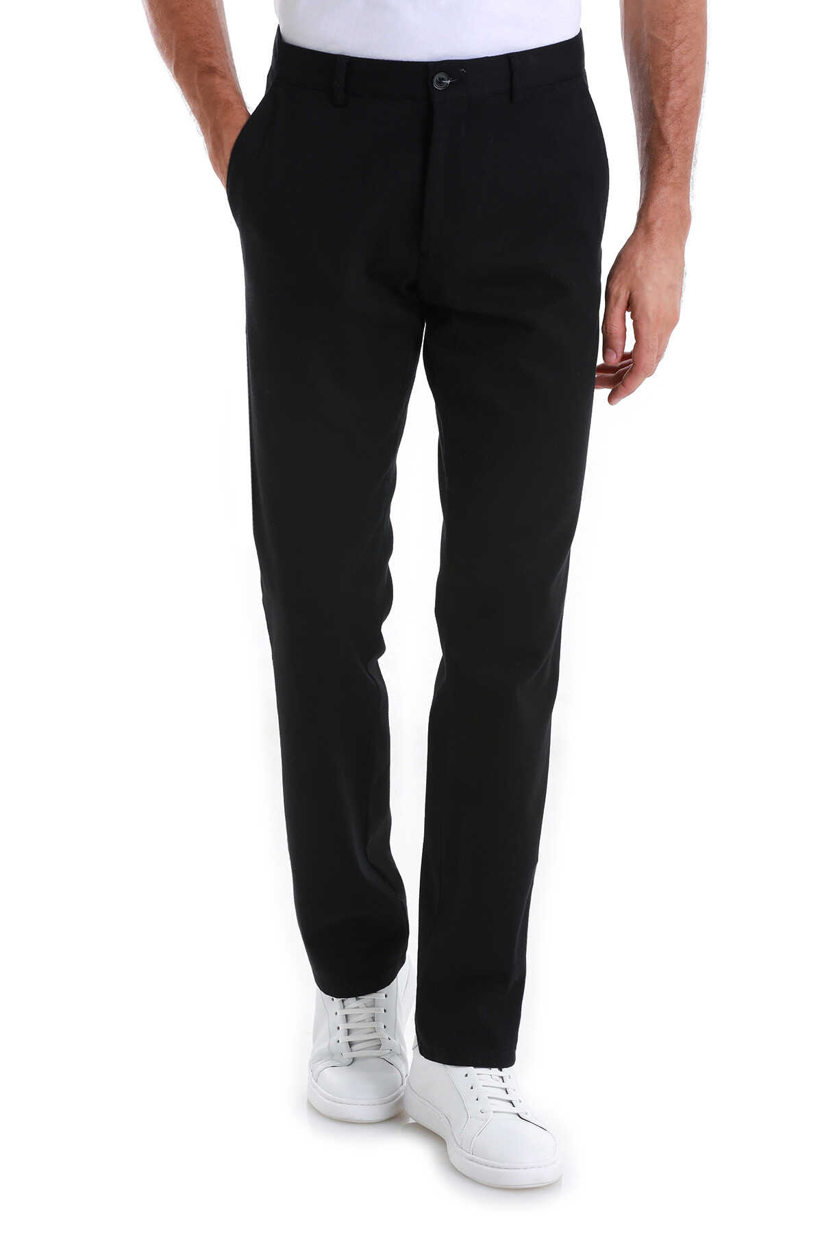 Siyah Regular Fit Pamuklu Yandan Cepli Kanvas Pantolon