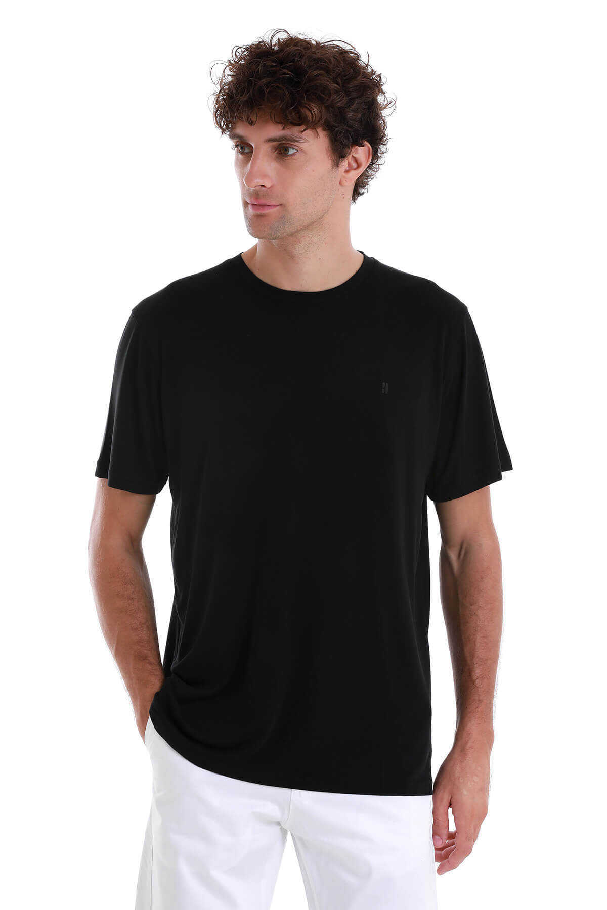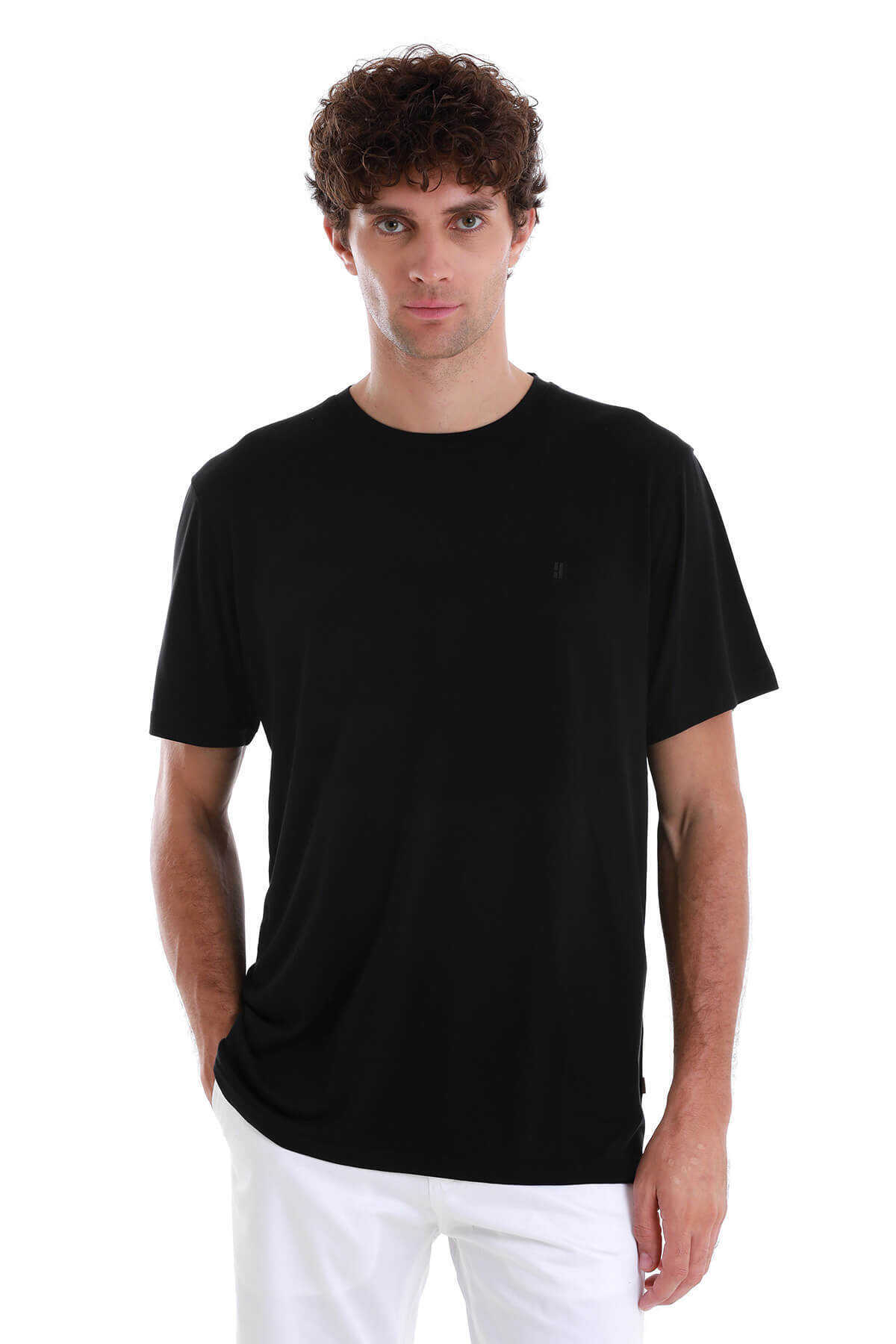 Siyah Regular Fit Bisiklet Yaka Tişört