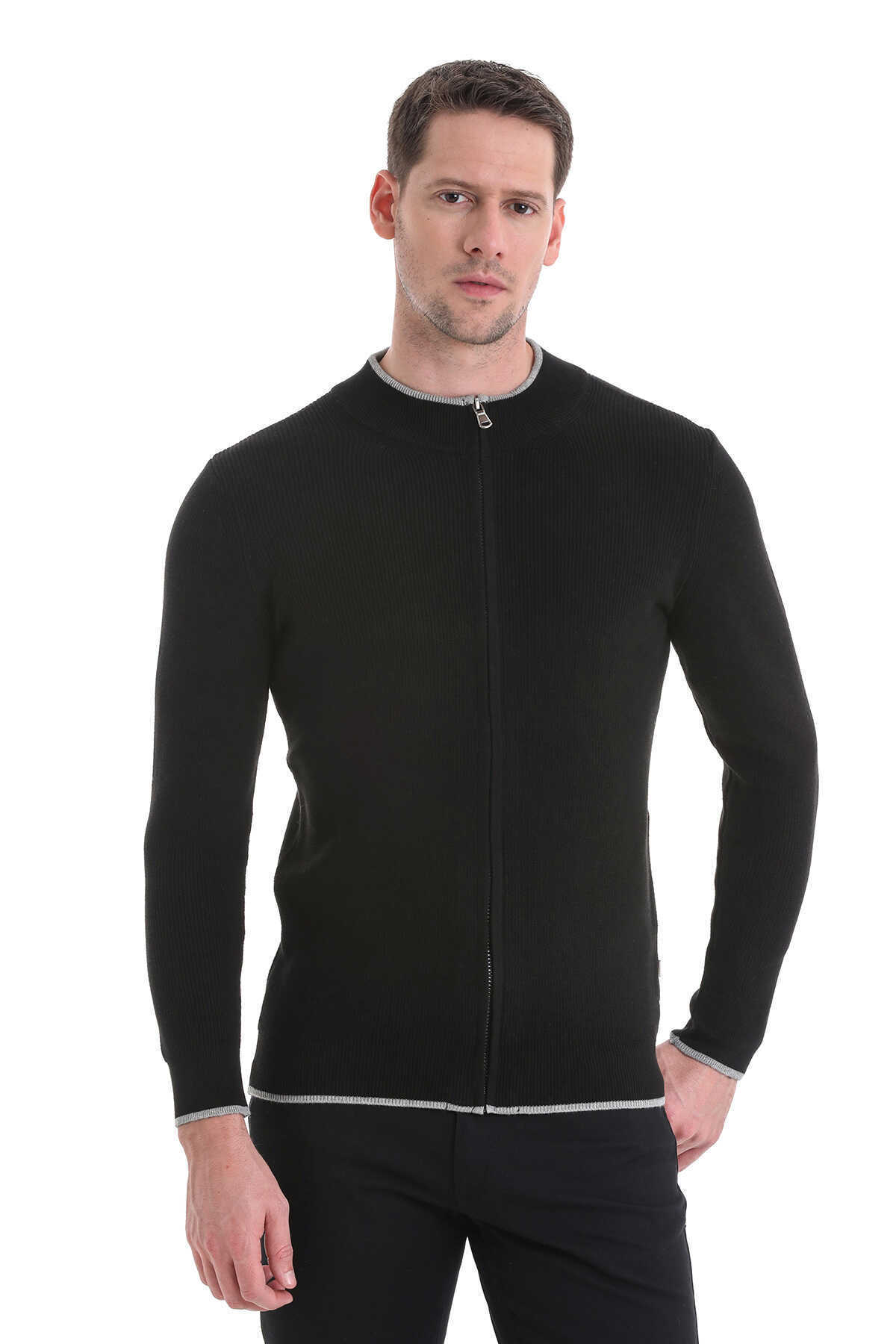 Siyah Regular Fit Yarım Balıkçı Yaka Fermuarlı Triko Hırka