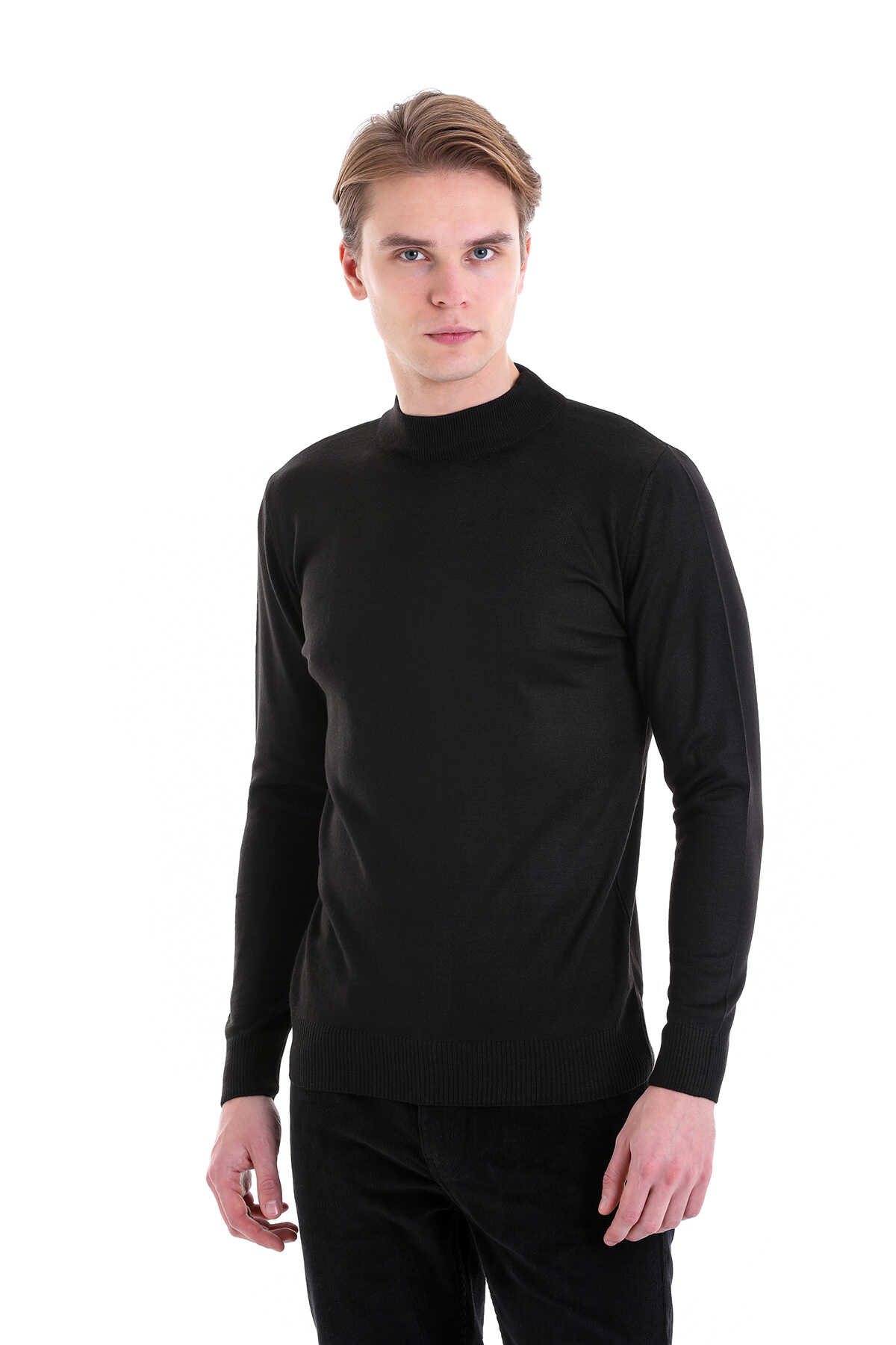 Siyah Comfort Fit Yarım Balıkçı Yaka Yünlü Kazak