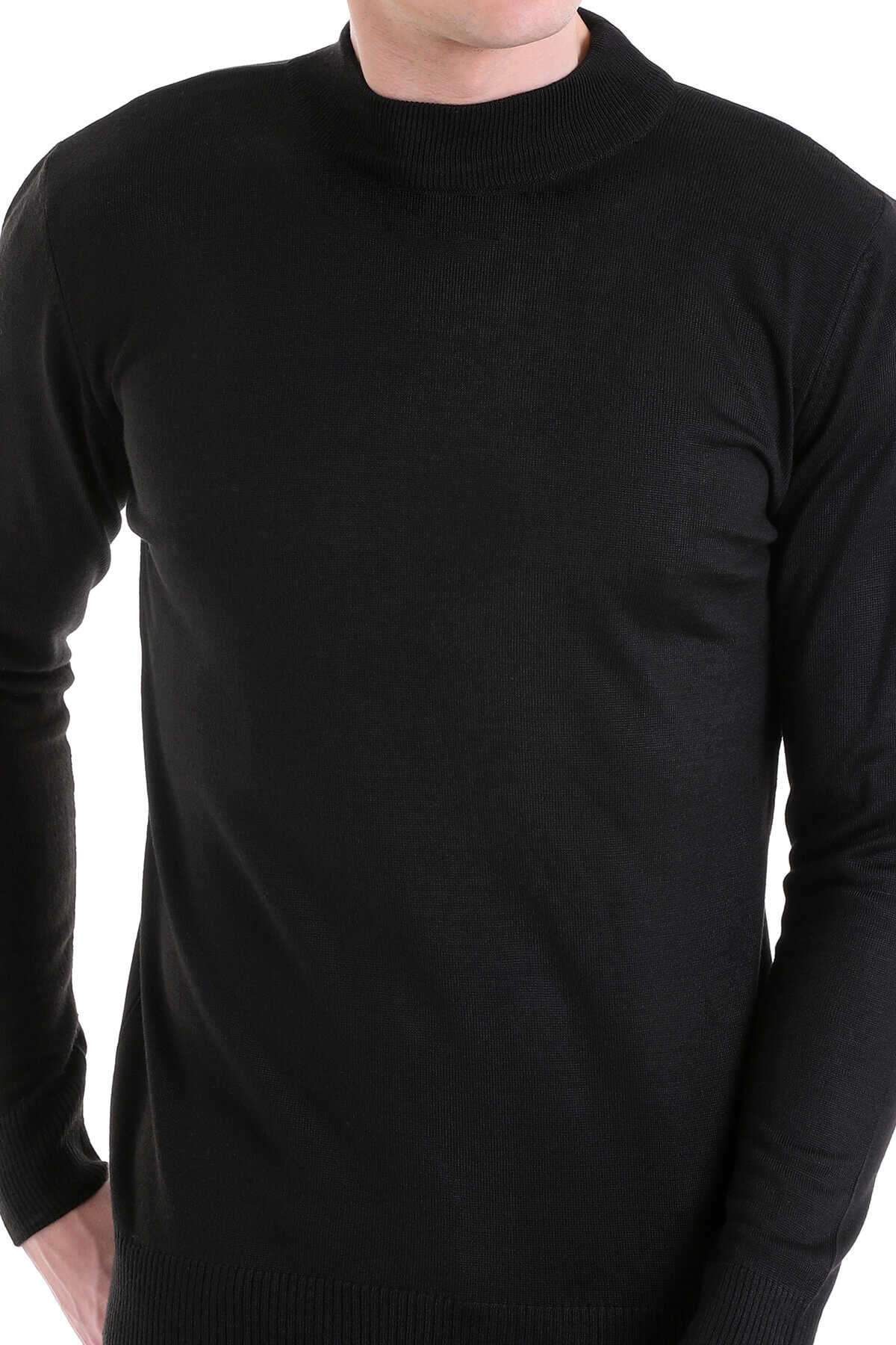 Siyah Comfort Fit Yarım Balıkçı Yaka Yünlü Kazak - 6