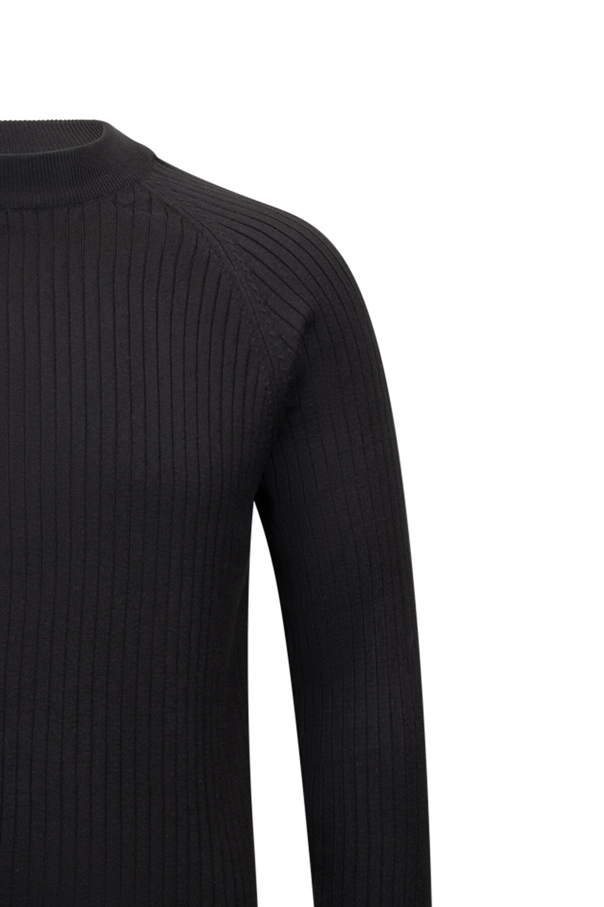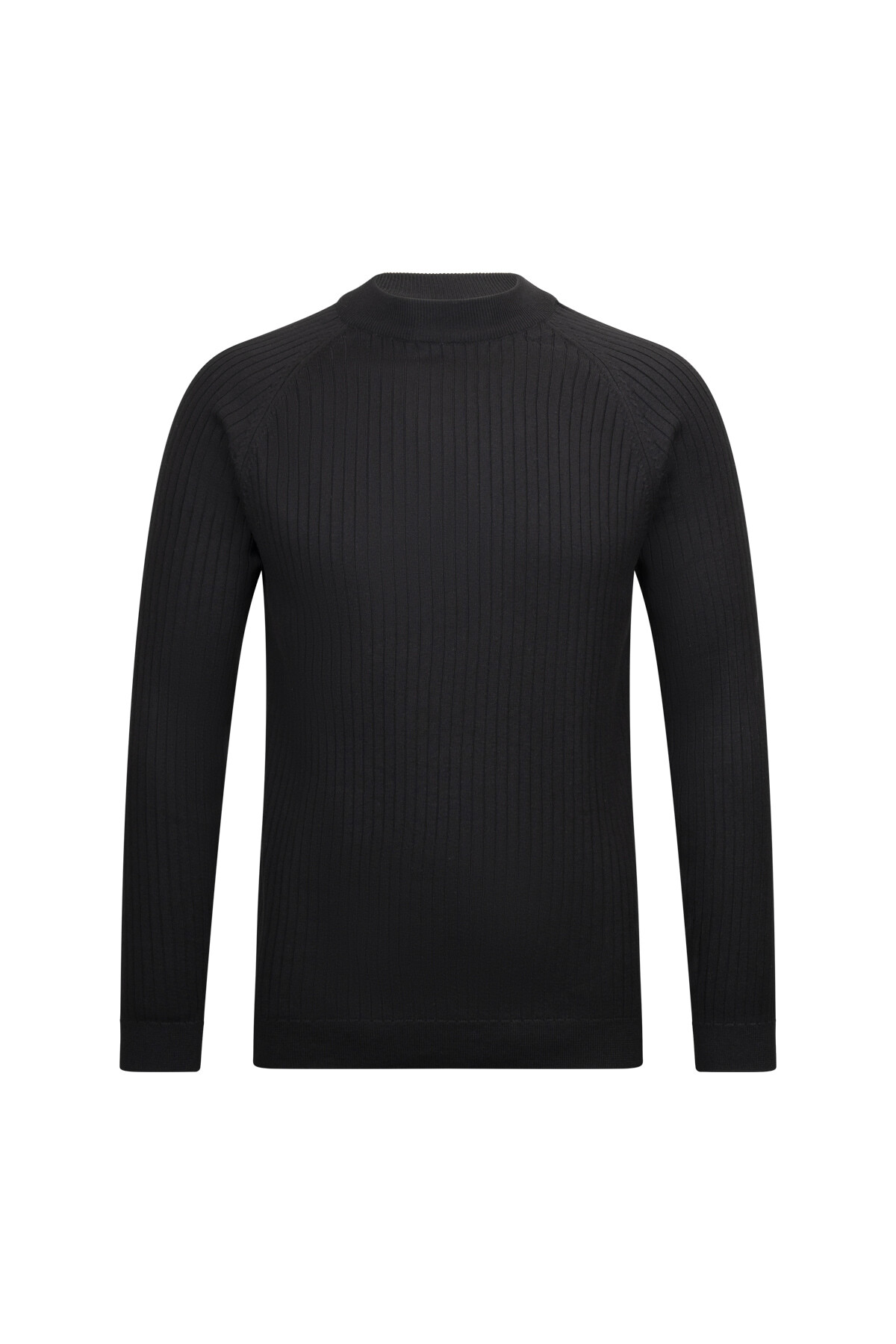 Siyah Regular Fit Fitilli Çeyrek Balıkçı Yaka Pamuklu Triko Kazak