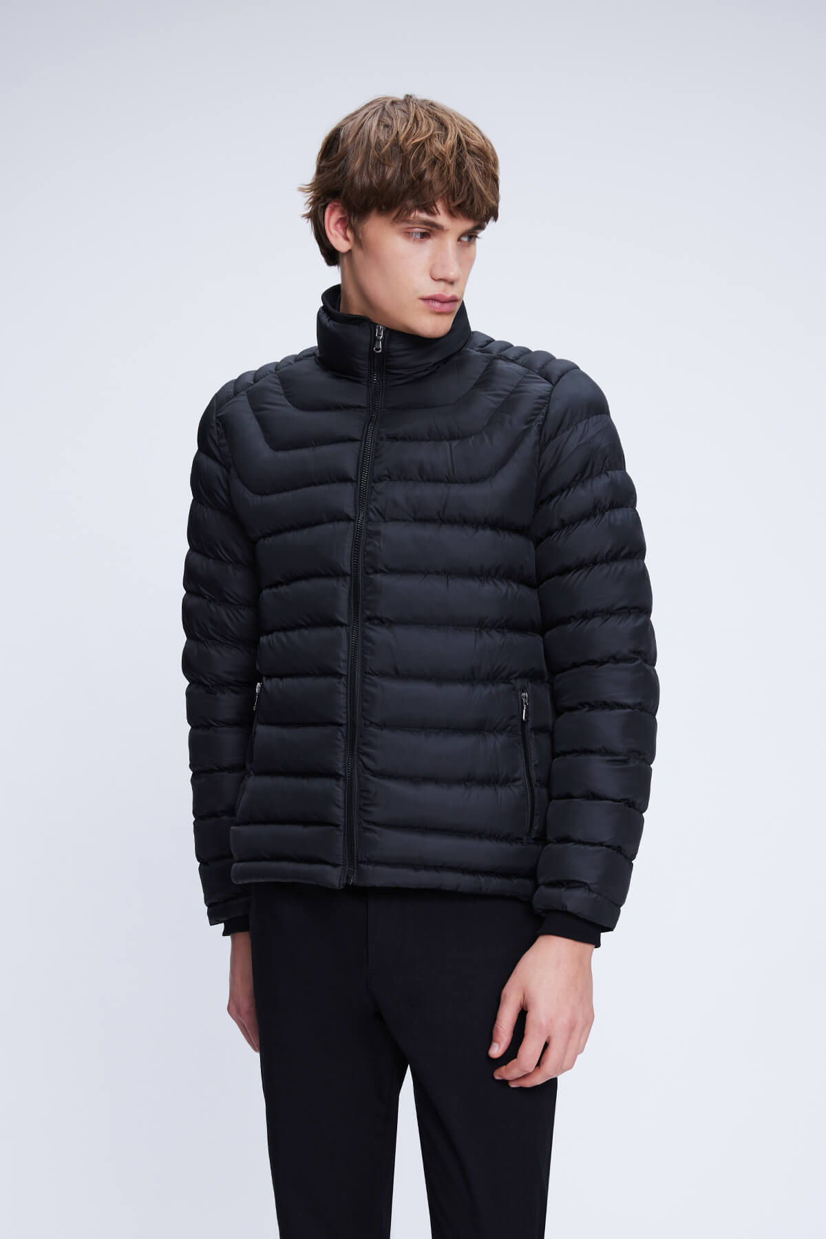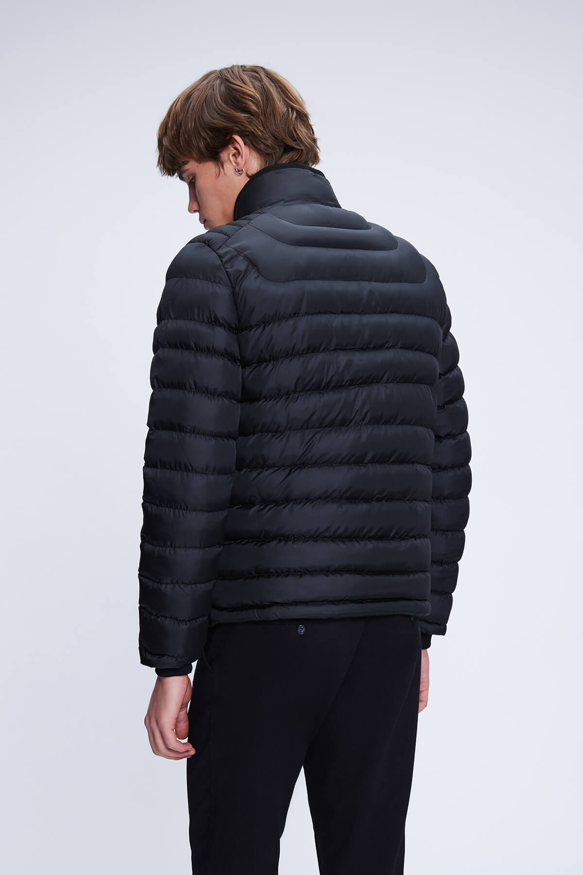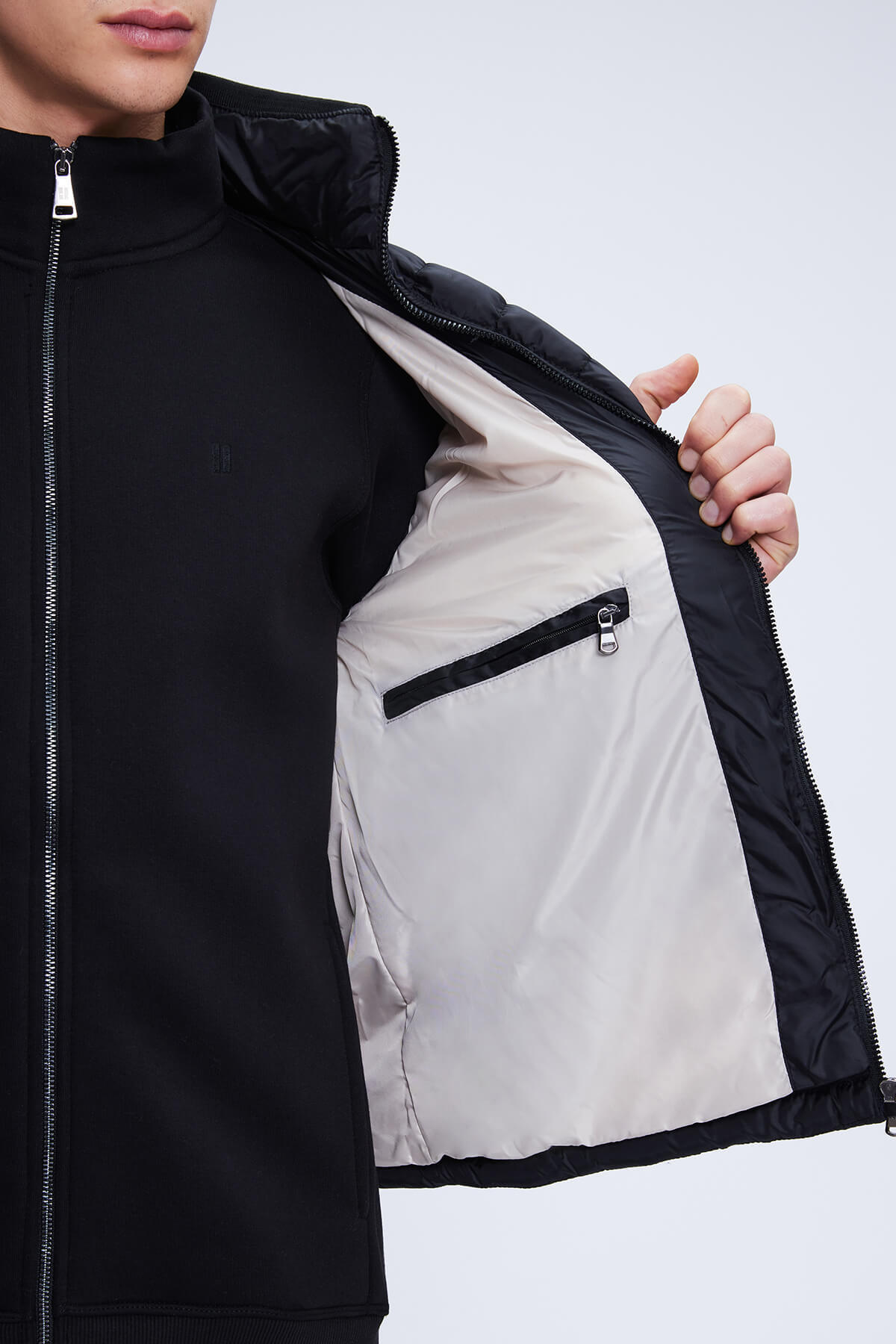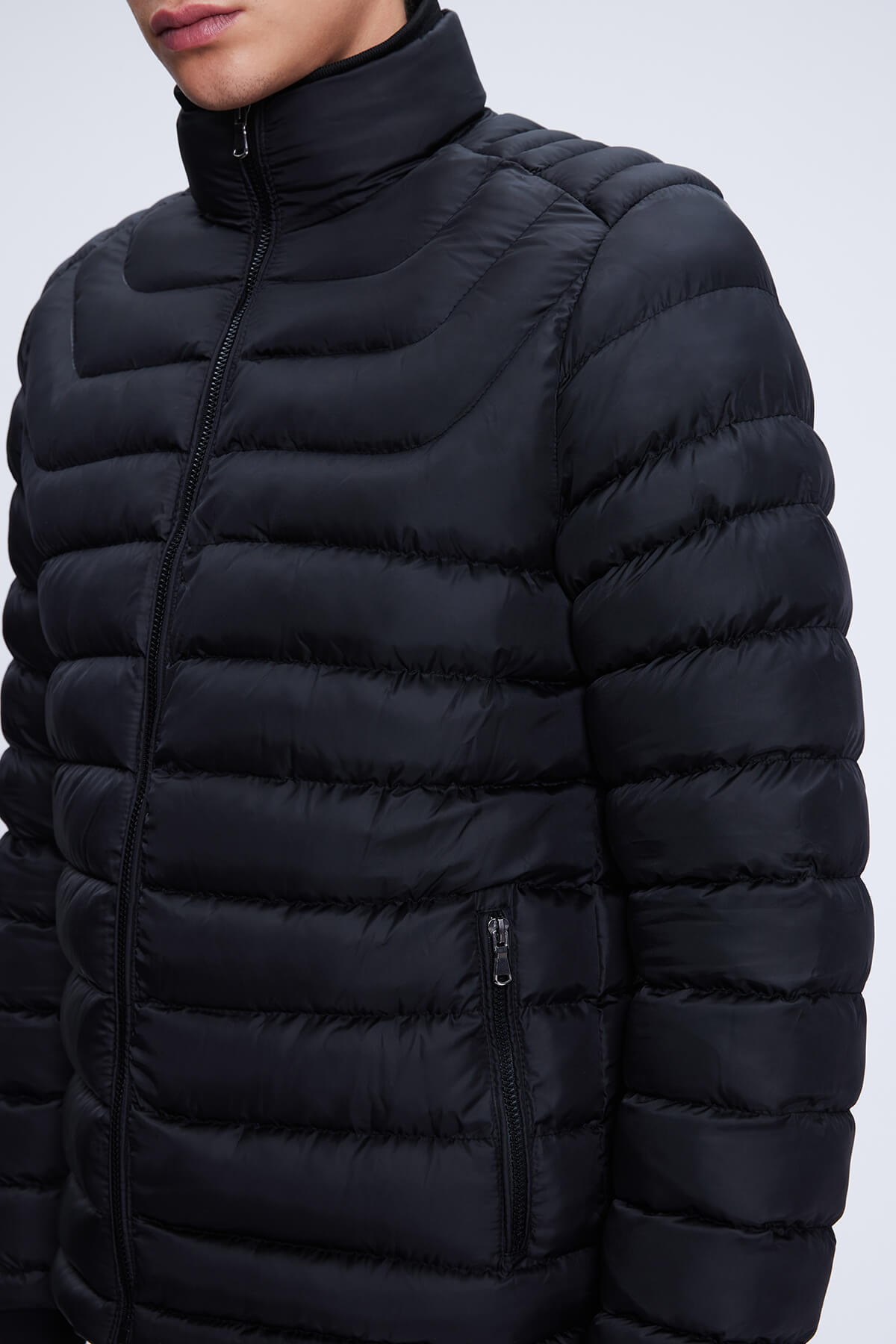 Siyah Regular Fit Hakim Yaka Şişme Mont
