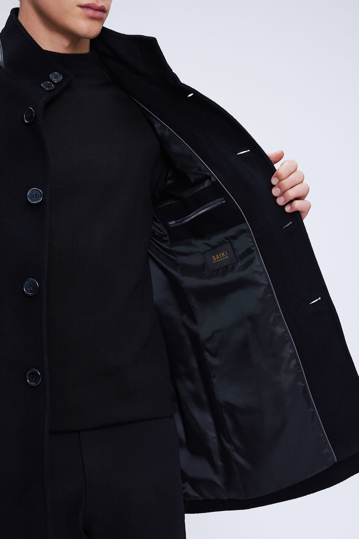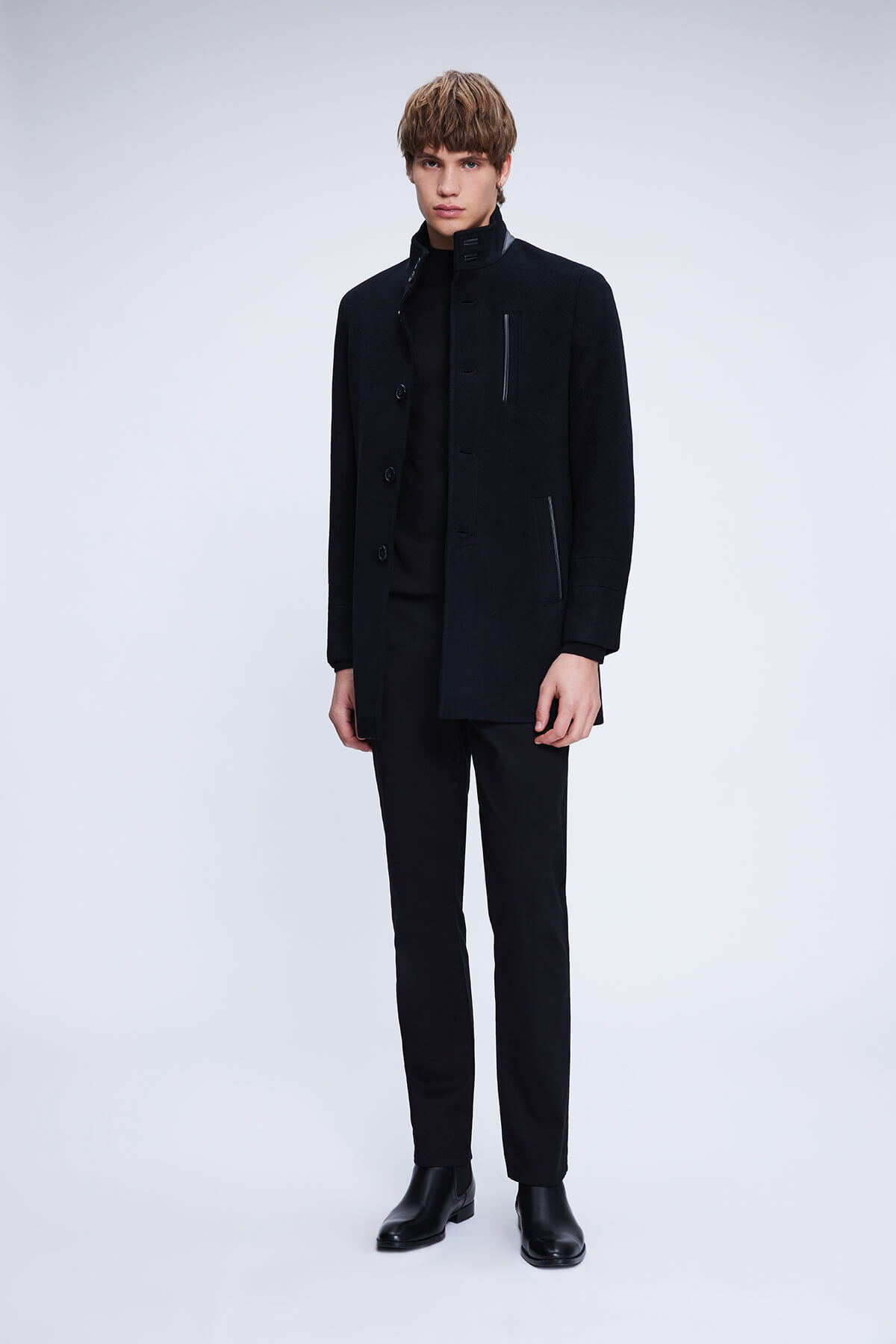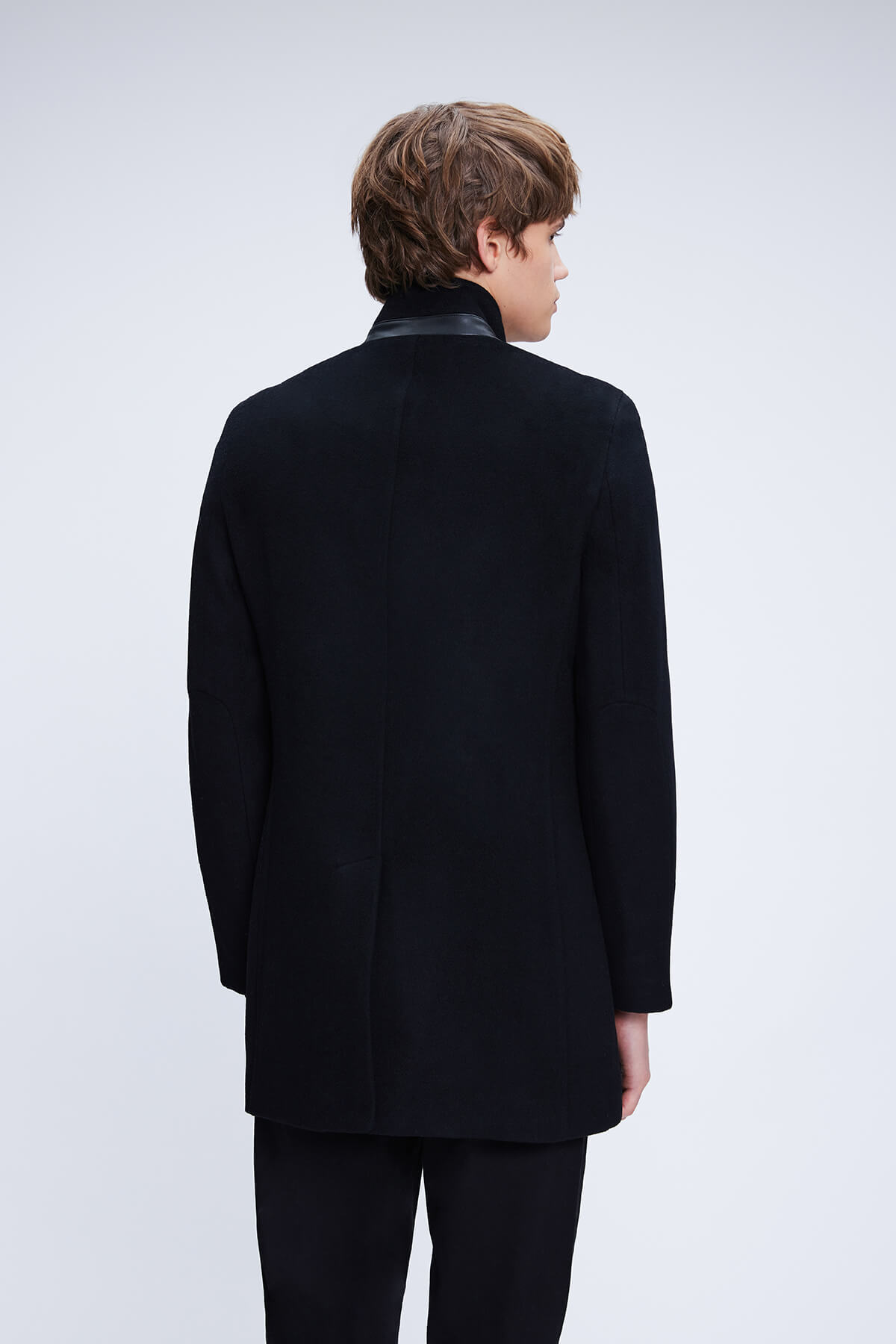 Siyah Regular Fit Hakim Yaka Yünlü Kaşe Palto - 5
