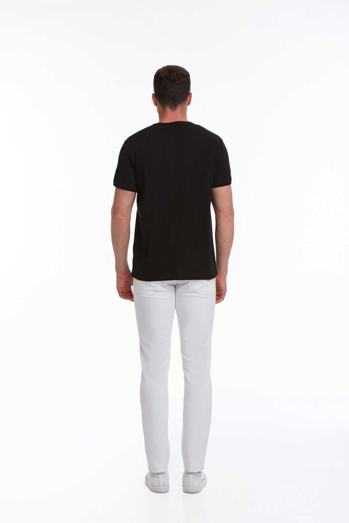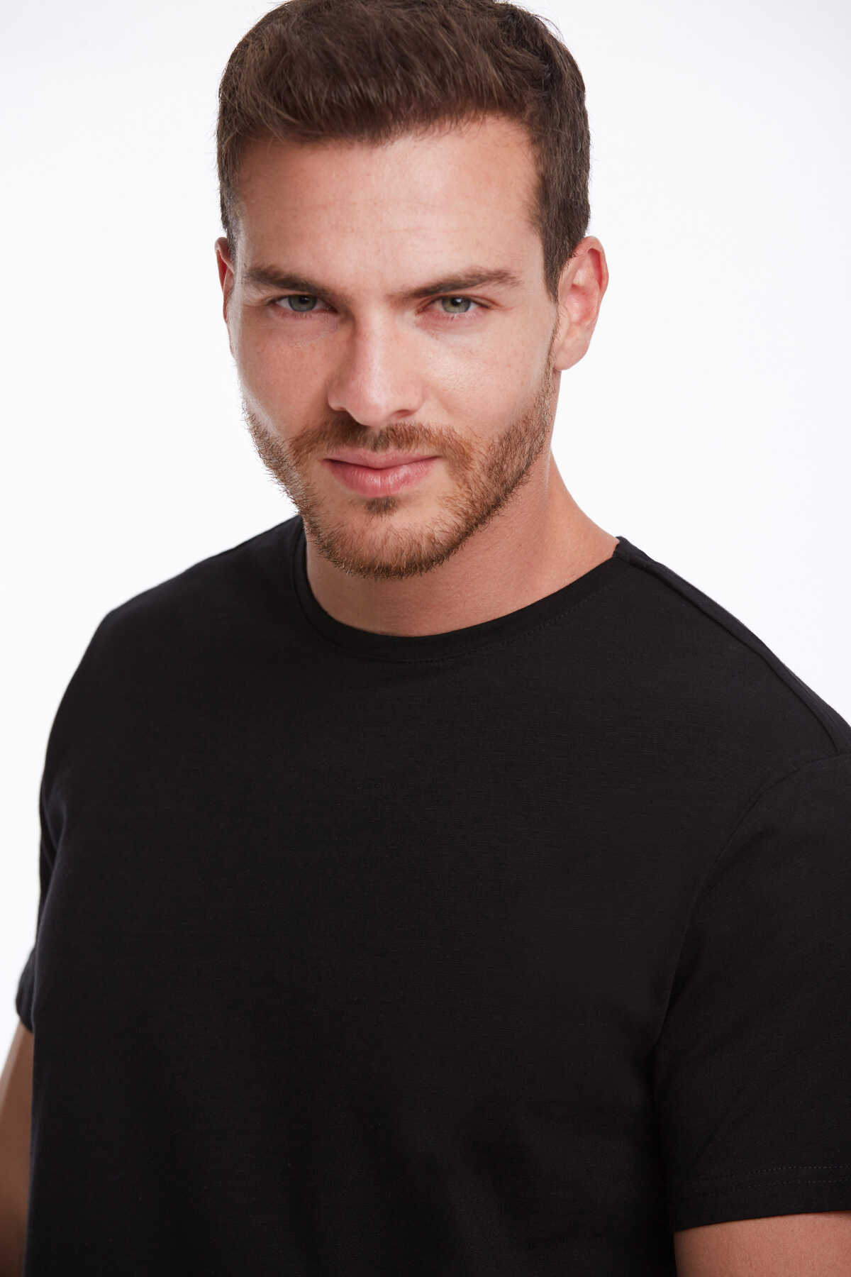 Siyah Regular Düz 100% Pamuk Bisiklet Yaka Tişört
