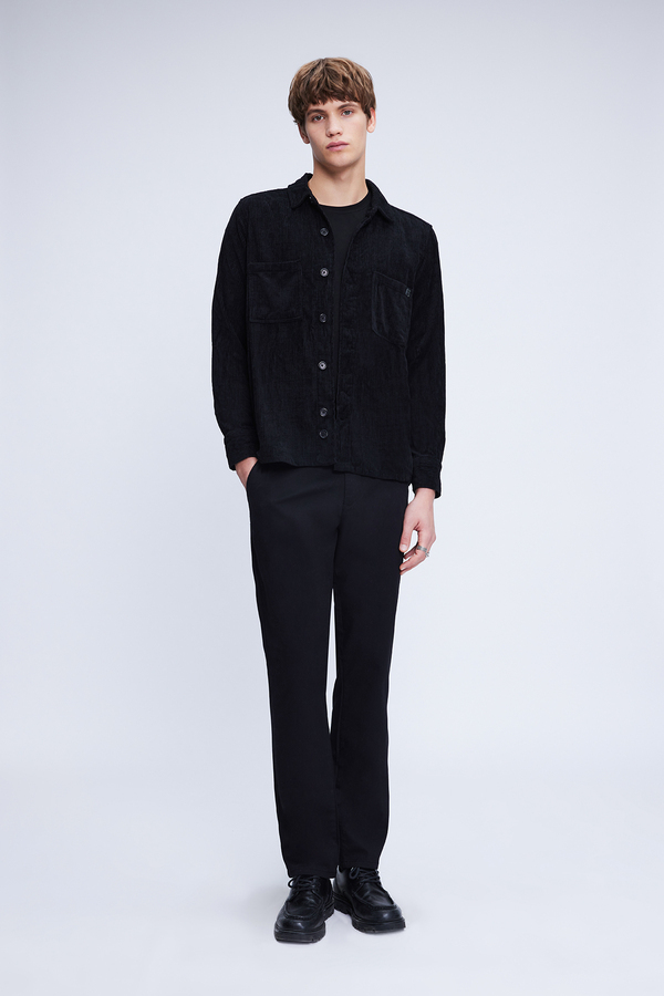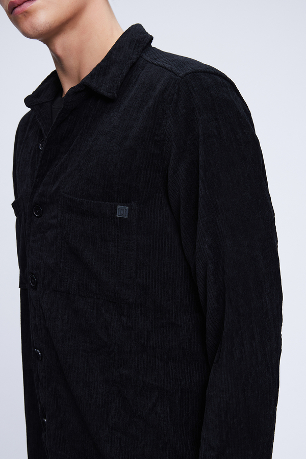 Siyah Regular Fit Shacket Uzun Kol Fitilli Kadife Gömlek