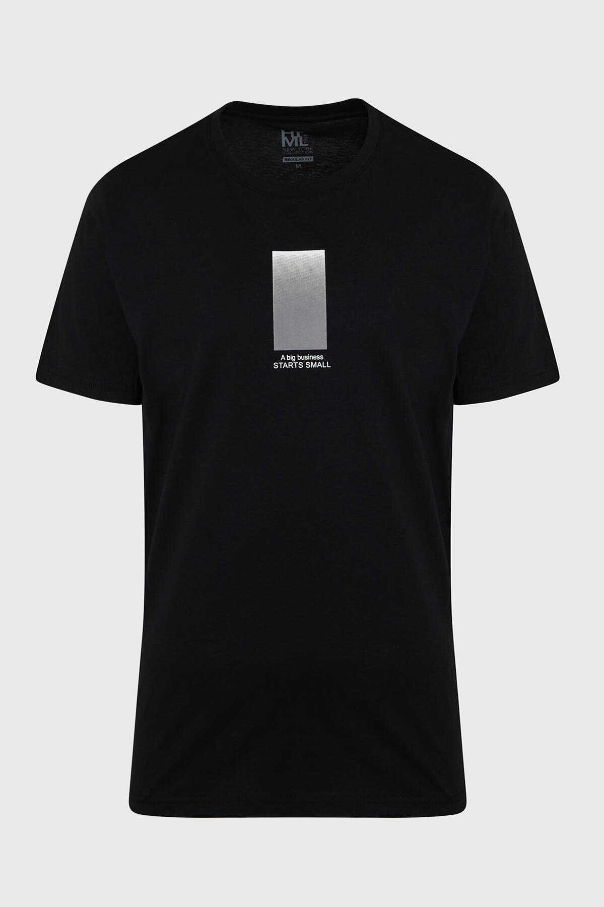 Siyah Slim Fit Baskılı 100% Pamuk Bisiklet Yaka Tişört