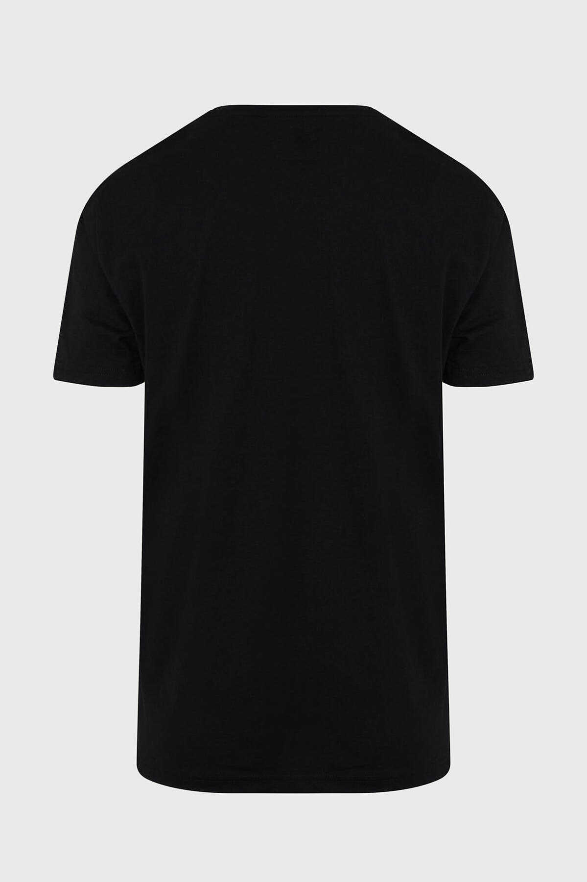 Siyah Slim Fit Baskılı 100% Pamuk Bisiklet Yaka Tişört