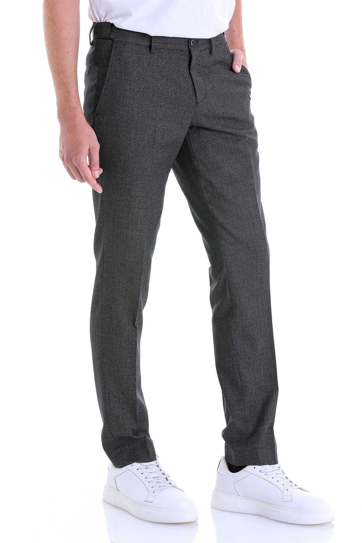 Siyah Regular Fit Desenli Yandan Cep Kumaş Pantolon