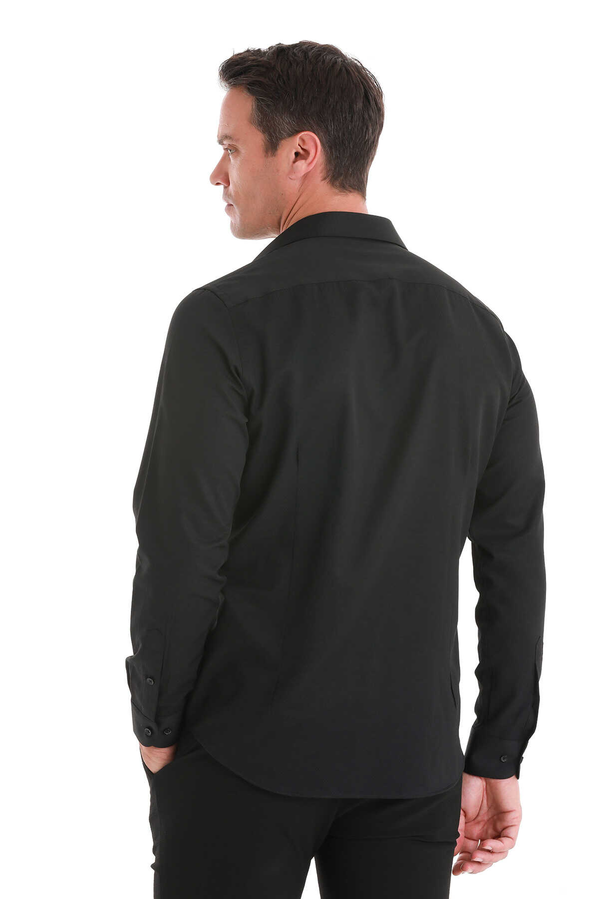 Siyah Slim Fit Slim Yaka Pamuklu Uzun Kollu Gömlek - 6