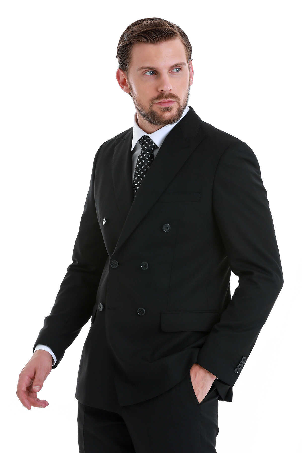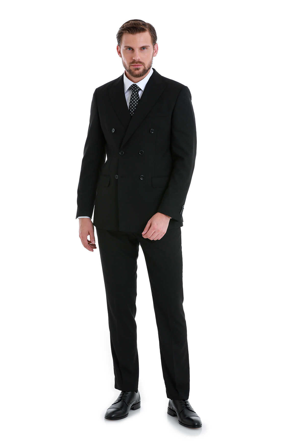Siyah Slim Fit Kruvaze Klasik Takım Elbise