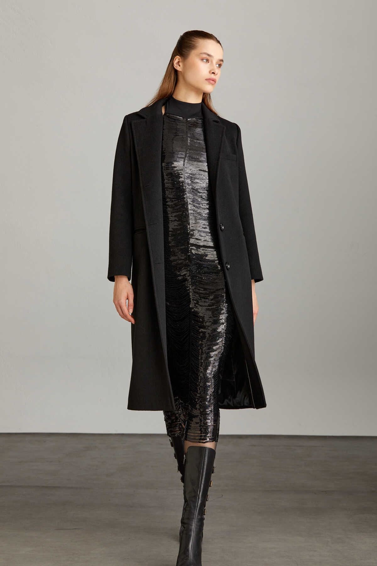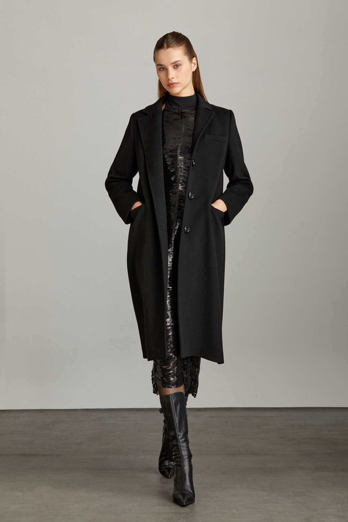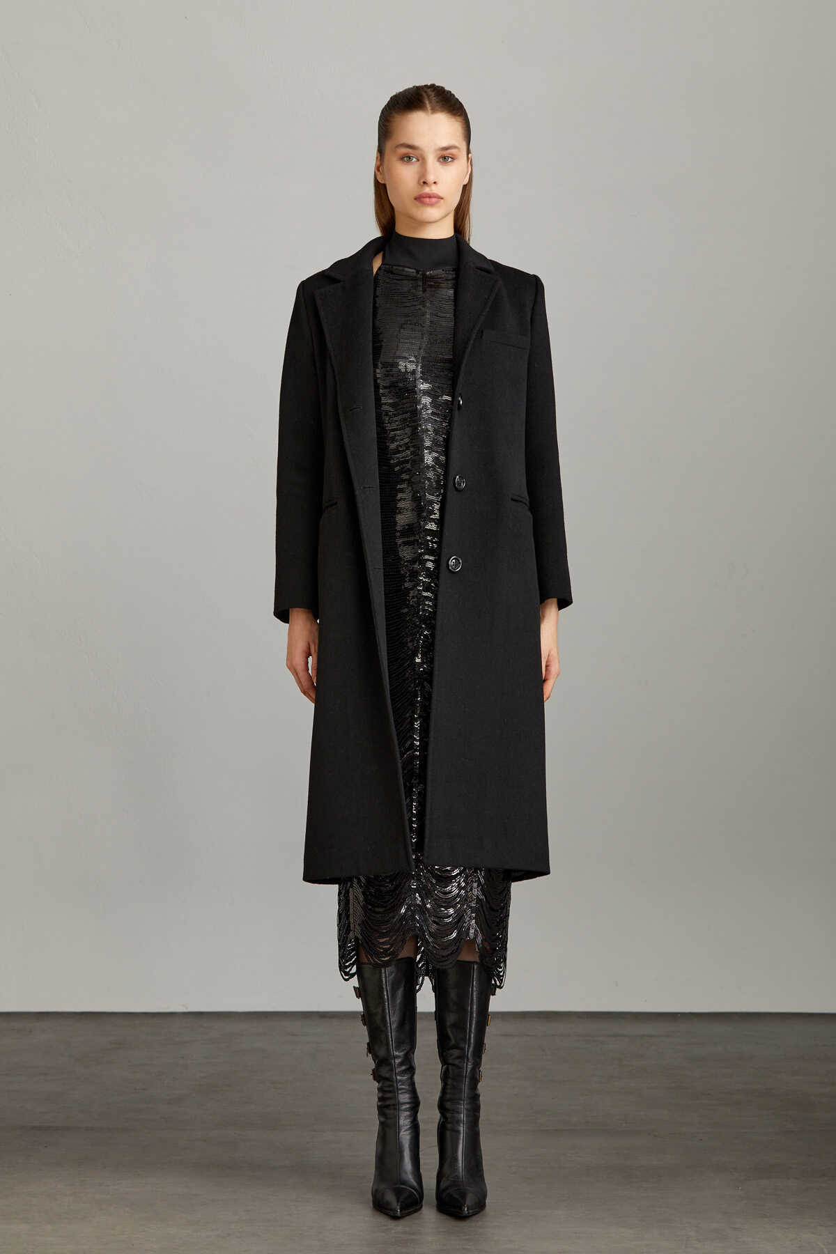 Saykı Woman Siyah Slim Fit Mono Yaka Yünlü Basic Kaşe Isabella Manto