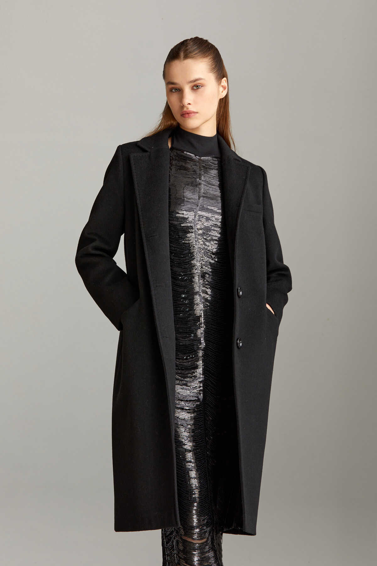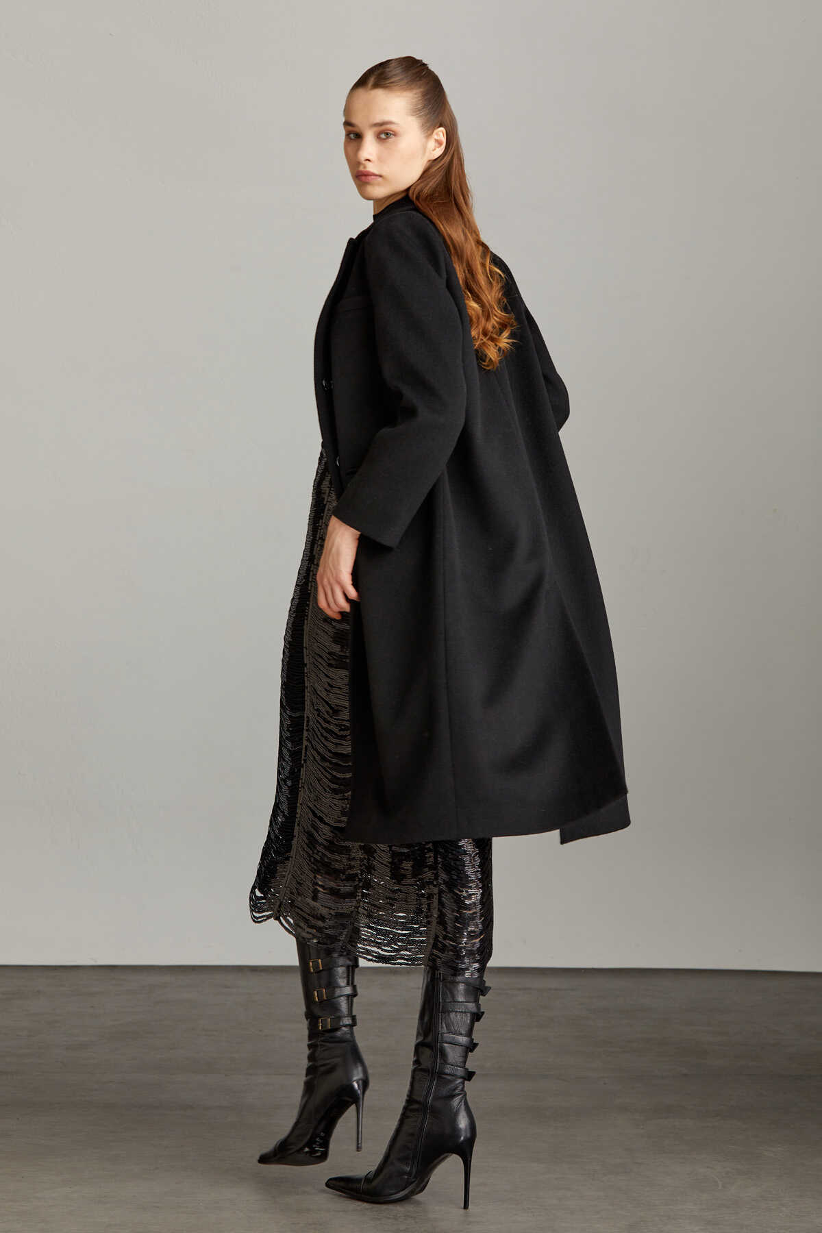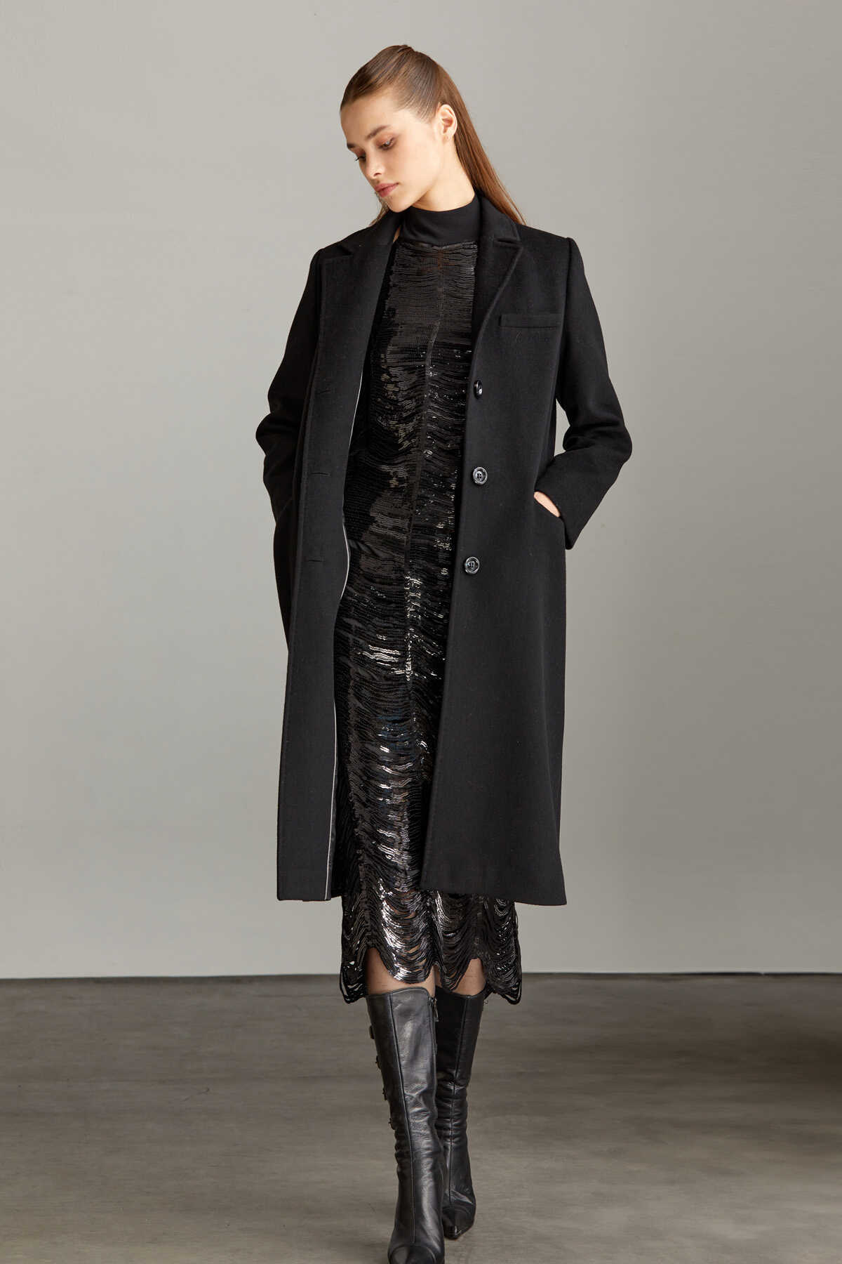 Saykı Woman Siyah Slim Fit Mono Yaka Yünlü Basic Kaşe Isabella Manto