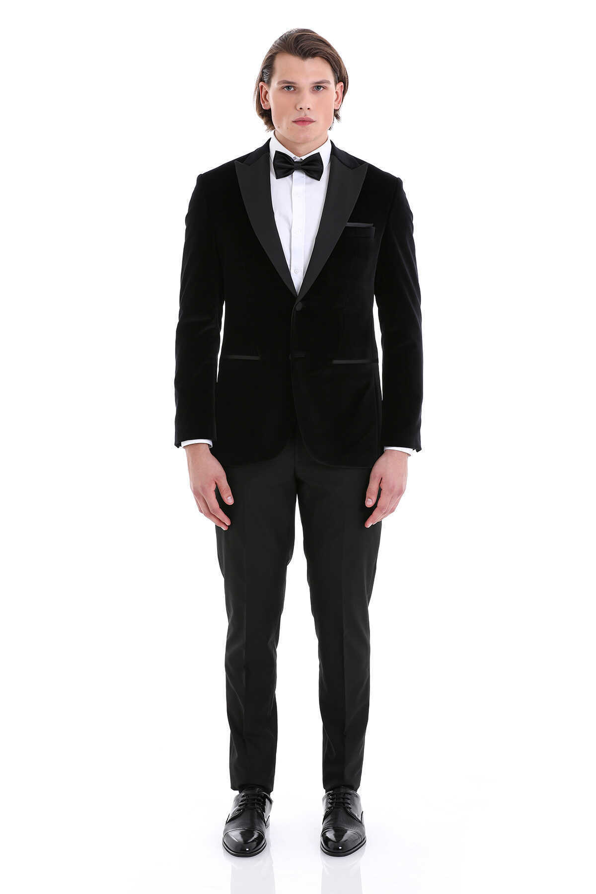 • Kullanım: Düğün, davet, nişan ve özel gecelerde tercih edilebilir. Beyaz gömlek ve siyah papyon ile klasik bir stil yaratır. Kadife dokusu özellikle sahne ışıklarında derinlik ve sofistike bir görünüm kazandırır.