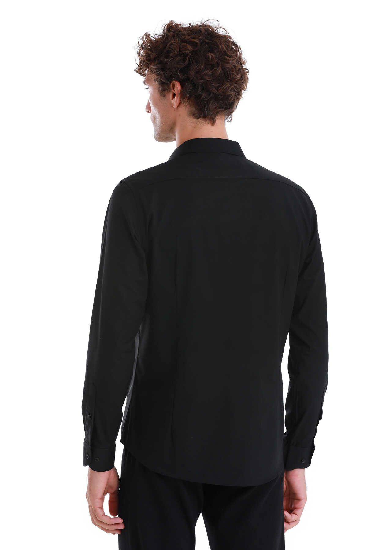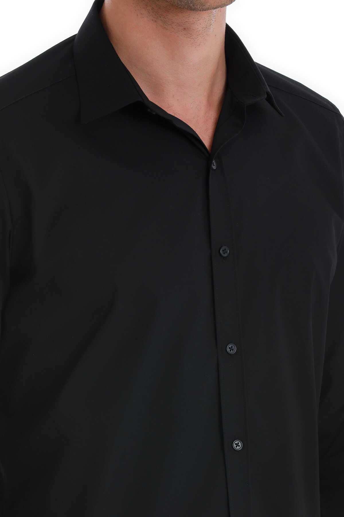 Siyah Slim Fit Slim Yaka Pamuklu Uzun Kollu Spor Gömlek - 6