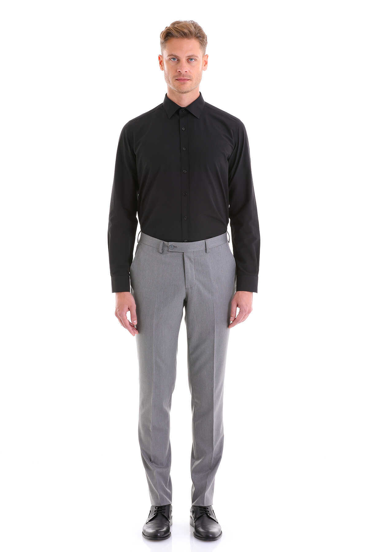 Siyah Slim Fit Pamuklu Slim Yaka Uzun Kollu Klasik Gömlek